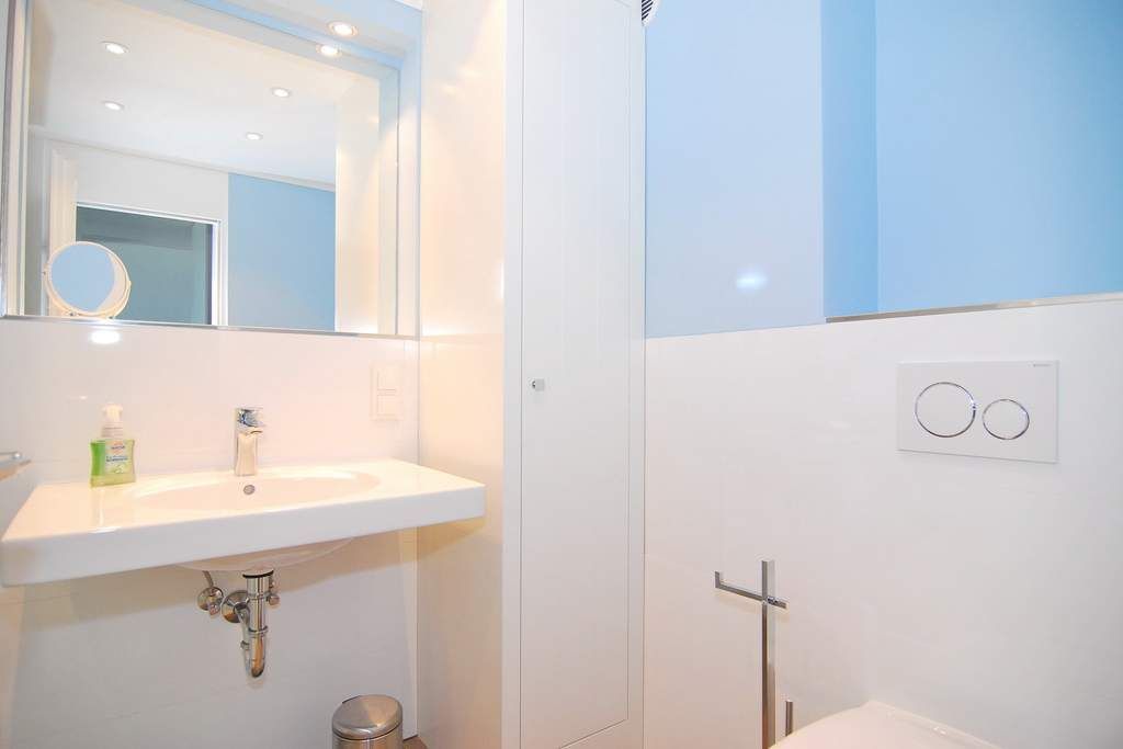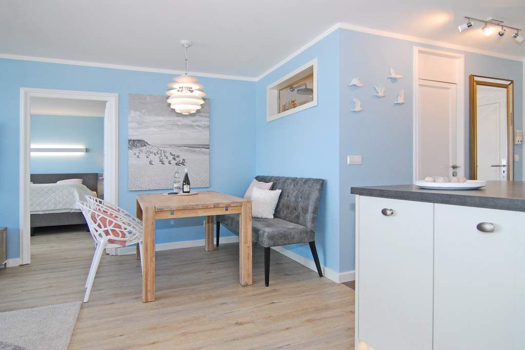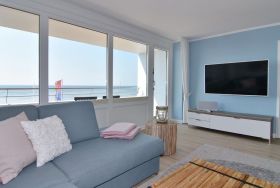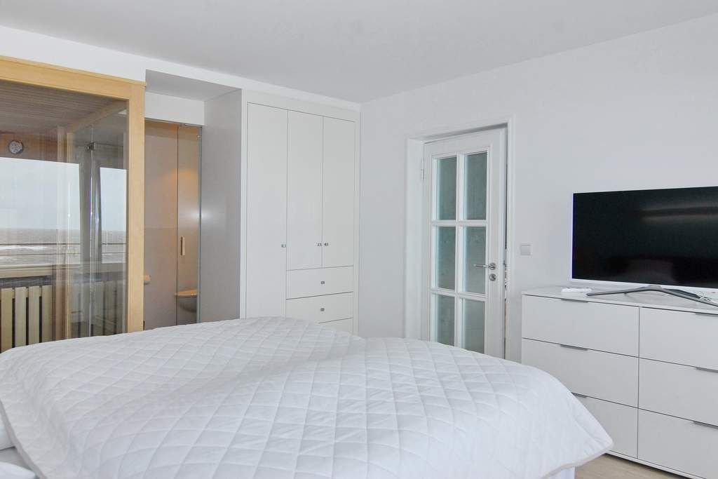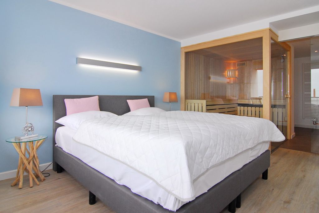 Das ist nicht zu toppen. Diese exklusive 2-Zimmer-Ferienwohnung im Haus Metropol bietet neben einer wunderschönen Ausstattung eine Sauna mit Blick auf das Meer. Genießen Sie auf 76m² ein elegantes Wohnzimmer mit geräumiger Sitz- und Essecke und einer Küche, die keine Wünsche offen lässt. Der freie Küchenblock bietet viel Arbeitsfläche, so dass hier jeder kulinarischer Traum erfüllt werden kann. Die Sitzecke lässt sich zu einer Schlafgelegenheit mit einer Liegefläche von 140 x 200 cm umfunktionieren. Das separate Schlafzimmer mit Doppelbett (2x90x200), Kleiderschrank und Flat-TV verfügt genauso wie das Wohnzimmer über einen eigenen Westbalkon. Direkt ans Schlafzimmer angrenzend befindet sich die finnische Sauna mit großer Panoramascheibe, so dass Sie von hier aus auf das Meer schauen können. Zwei Duschbäder mit Regenduschen sorgen für die entsprechende Abkühlung. Ein Abstellraum mit Schrankfläche bietet nochmals Platz für Kleidung und Gepäck. Diese Wohnung ist eine strikte Nichtraucher-Wohnung, Tierhaltung ist hier nicht gestattet. Ein PKW-Stellplatz kann kostenpflichtig gebucht werden. Bettwäsche und Handtücher sind zur Anreise aufgezogen.
