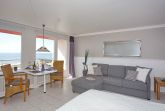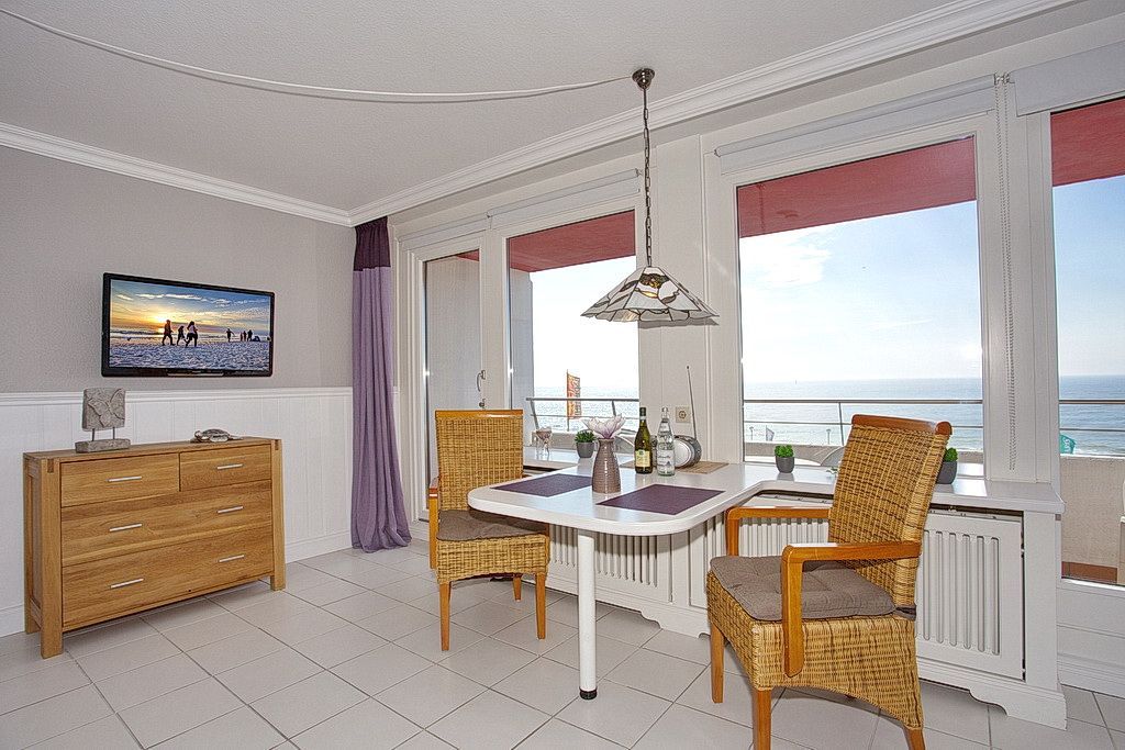 Der möblierte sonnige Westbalkon bietet sich an, den Sonnenuntergang mit Blick auf die Nordsee und Promenade zu genießen. Bettwäsche und Handtücher sind zur Anreise aufgezogen. Ein PKW-Stellplatz kann kostenpflichtig zugebucht werden.