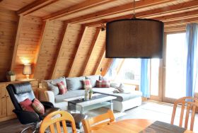 Unsere Familien-Finnhütten sind für 4-5 Personen ausgelegt. Die Möglichkeit zur Aufbettung im Wohnzimmer auf einer Schlafcouch mit einer Liegefläche von 1,30 m x 2,15 m besteht auf Anfrage für bis zu zwei Personen.