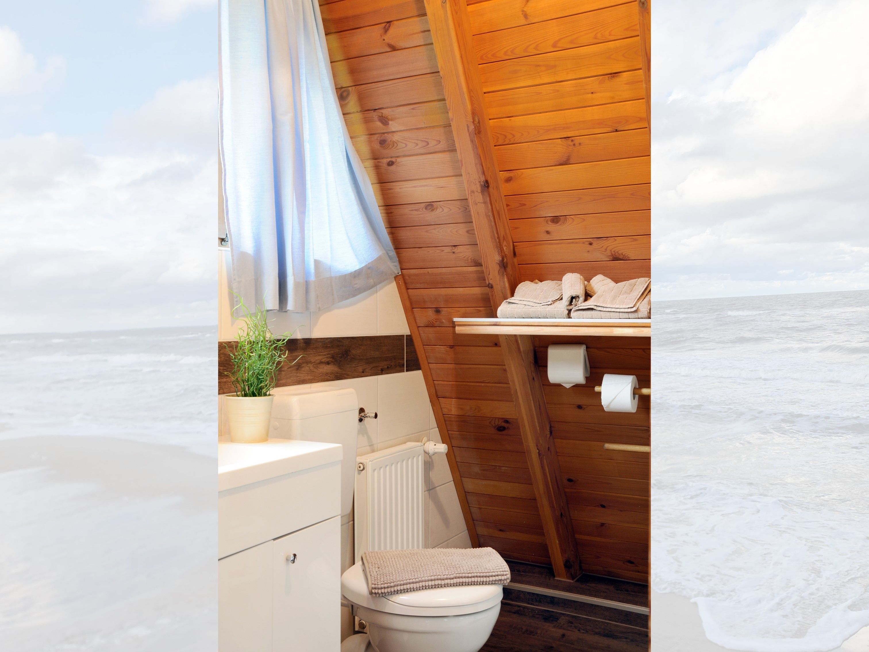 Über die Treppe erreichen Sie das Obergeschoss, welches mit einem Bad und zwei Schlafzimmern ausgestattet ist. Das eine Schlafzimmer verfügt über zwei Einzelbetten, während das zweite Schlafzimmer drei Einzelbetten beinhaltet. Das Bad ist mit einem WC und einer Dusche ausgestattet perfekt, um sich für den Tag oder den bevorstehenden Abend frisch zu machen.
