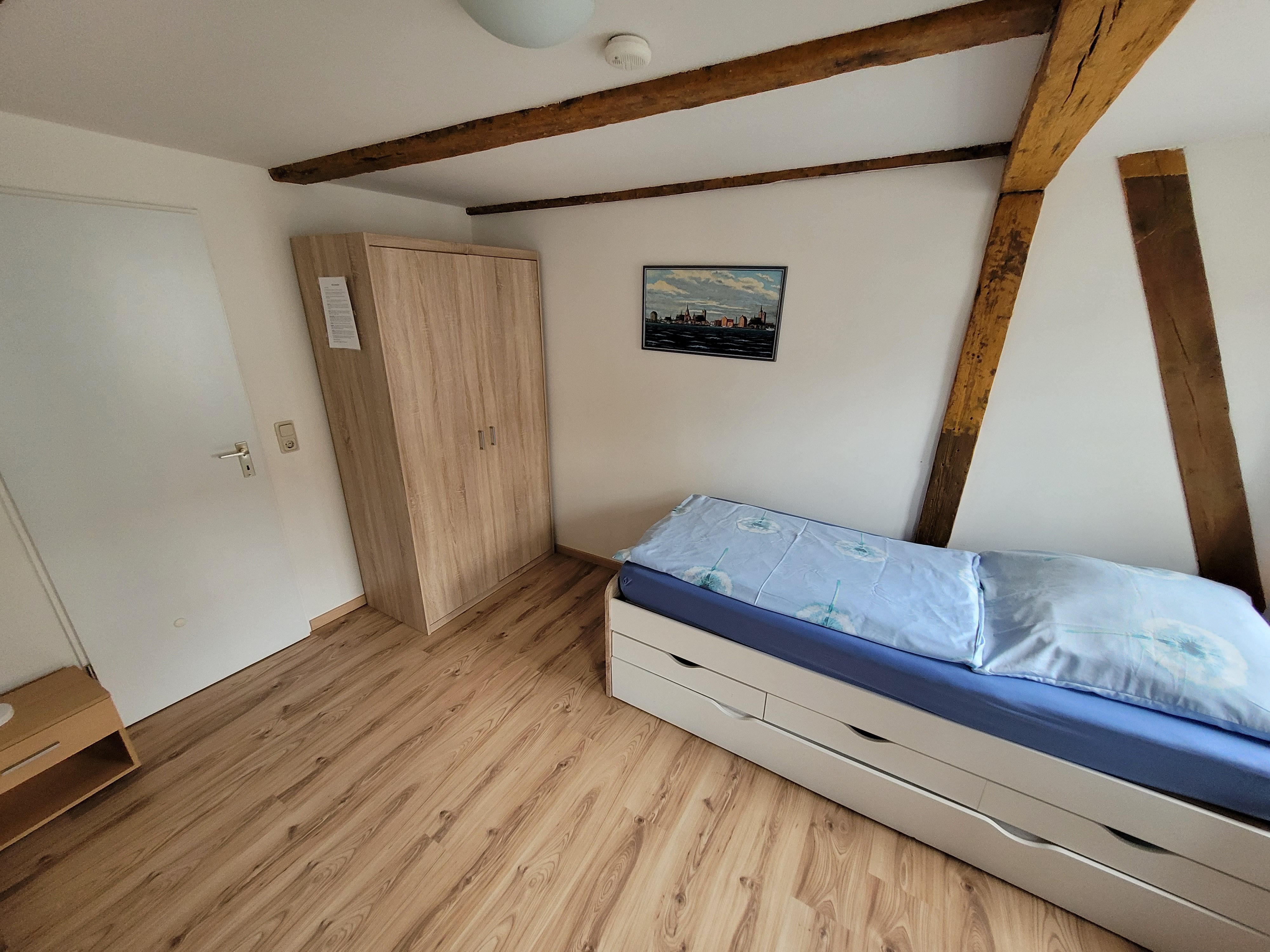 Die Ferienwohnung befindet sich im 2.OG in der Wasserstraße 12 und verfügt über ein Wohnzimmer, ein Schlafzimmer mit zwei Einzelbetten sowie ein Schlafzimmer mit 3 Einzelbetten, eine komplette Küche und Dusche/WC.