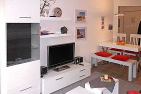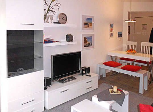 Der Balkon ist mit Möbeln und einem Sonnenschirm ausgestattet. Das Wohnzimmer bietet einen Fernseher mit Radio und CD-Player, einen Relaxsessel sowie ein Bluetooth Music-Center mit MP3-Player. Dort befindet sich auch das Schlafsofa für die dritte Person.