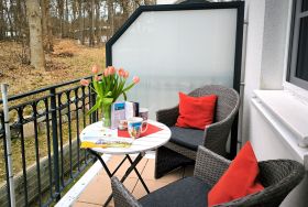 Die moderne, geschmackvolle und komfortable eingerichtete Ferienwohnung für 2-3 Personen liegt im ersten Obergeschoss der Residenz Haus Meeresblick in ruhiger Südwestlage. Vom Balkon führt der Blick in den Dünenbewachsenen Küstenwald.