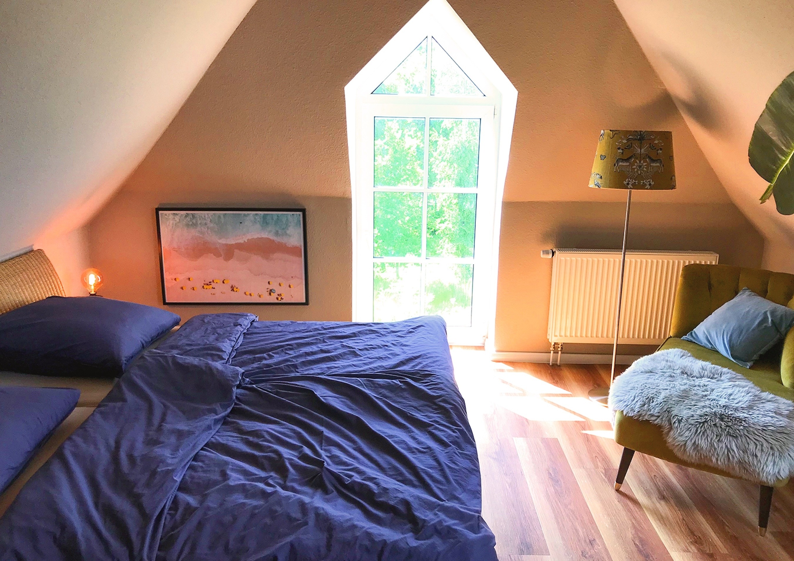 In der Ferienwohnung Auster gibt es zwei Schlafzimmer. Das eine ist über eine Treppe im Staffelgeschoss zu erreichen und mit einem Doppelbett und TV ausgestattet, ein weiteres Schlafzimmer ist in der unteren Ebene der Wohnung ebenfalls mit einem Doppelbett ausgestattet. Selbstverständlich gibt es Schränke um Ihre Urlaubsgarderobe usw. zu verstauen.