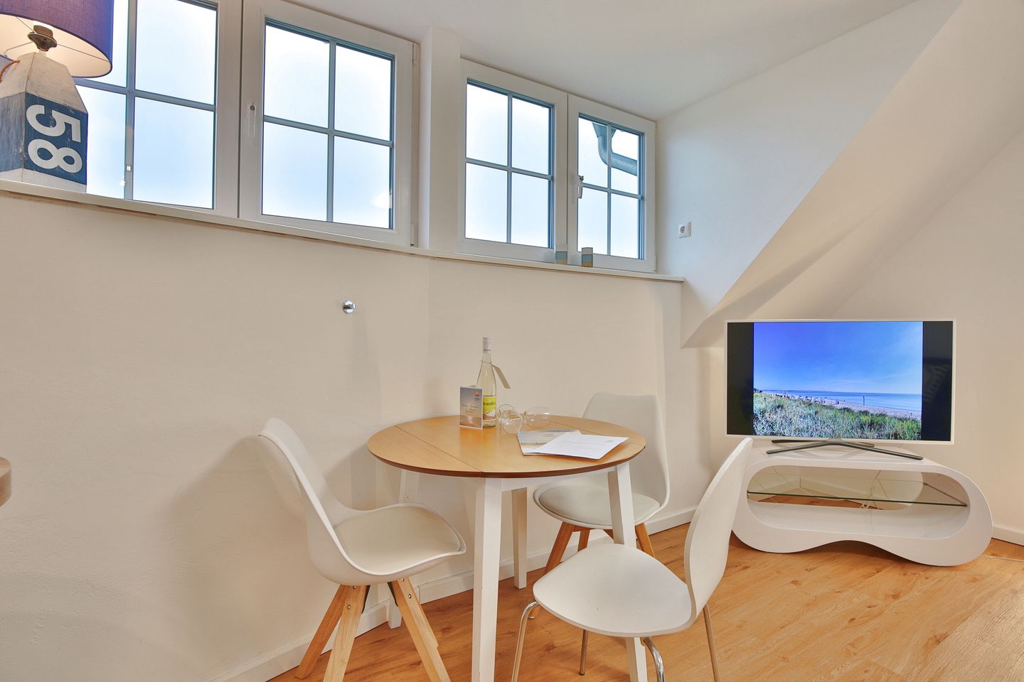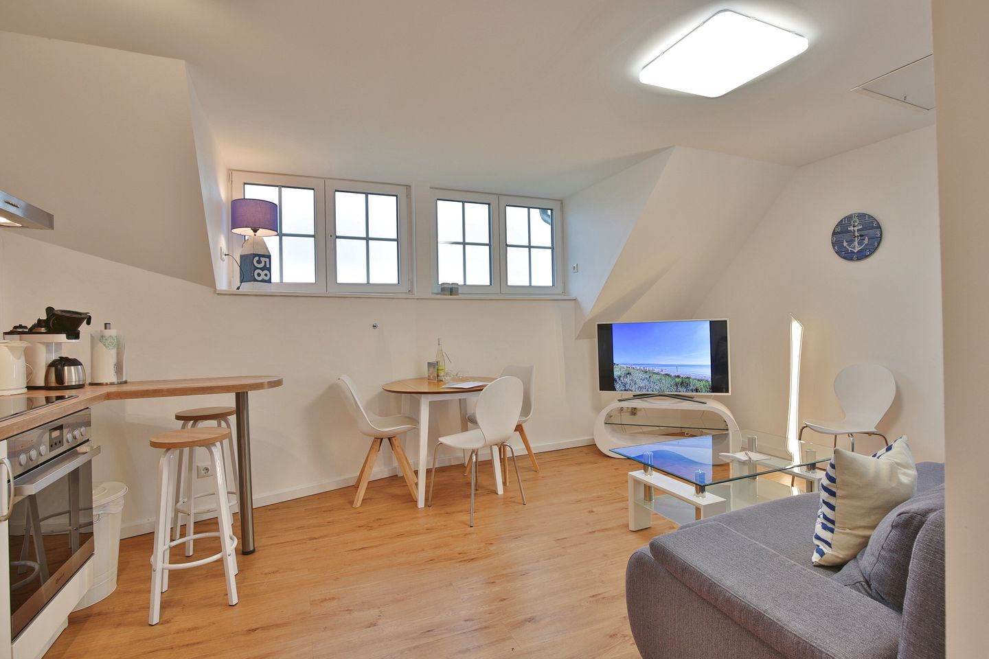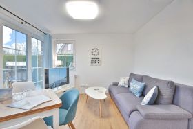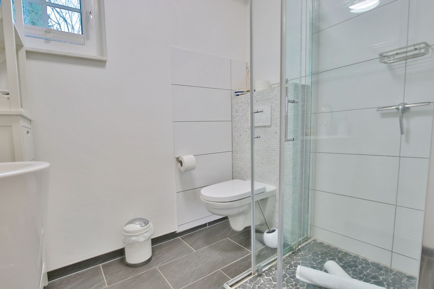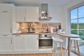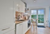Appartement 1 liegt im Erdgeschoß und überzeugt mit einem offenen Wohn- und Essbereich und einer gemütlichen Schlafcouch (1,40 x 2,00 m). Die voll ausgestatteten Küchen mit Geschirrspüler, Kaffeemaschine und kleiner Essecke runden die Ausstattung ab. Der Essplatz lädt zum gemeinsamen Frühstück für 3 Personen ein. Genießen Sie entspannende Stunden auf der eigenen Terrasse im Garten, während die Kleinen auf dem kindgerechten Grundstück spielen. Das Schlafzimmer verfügt über ein bequemes Doppelbett (1,80 x 2,00 m), TV und einem großzügigen Kleiderschrank für all Ihr Gepäck. Das moderne Badezimmer mit bodentiefer Dusche und WC lässt keine Wünsche mehr offen.