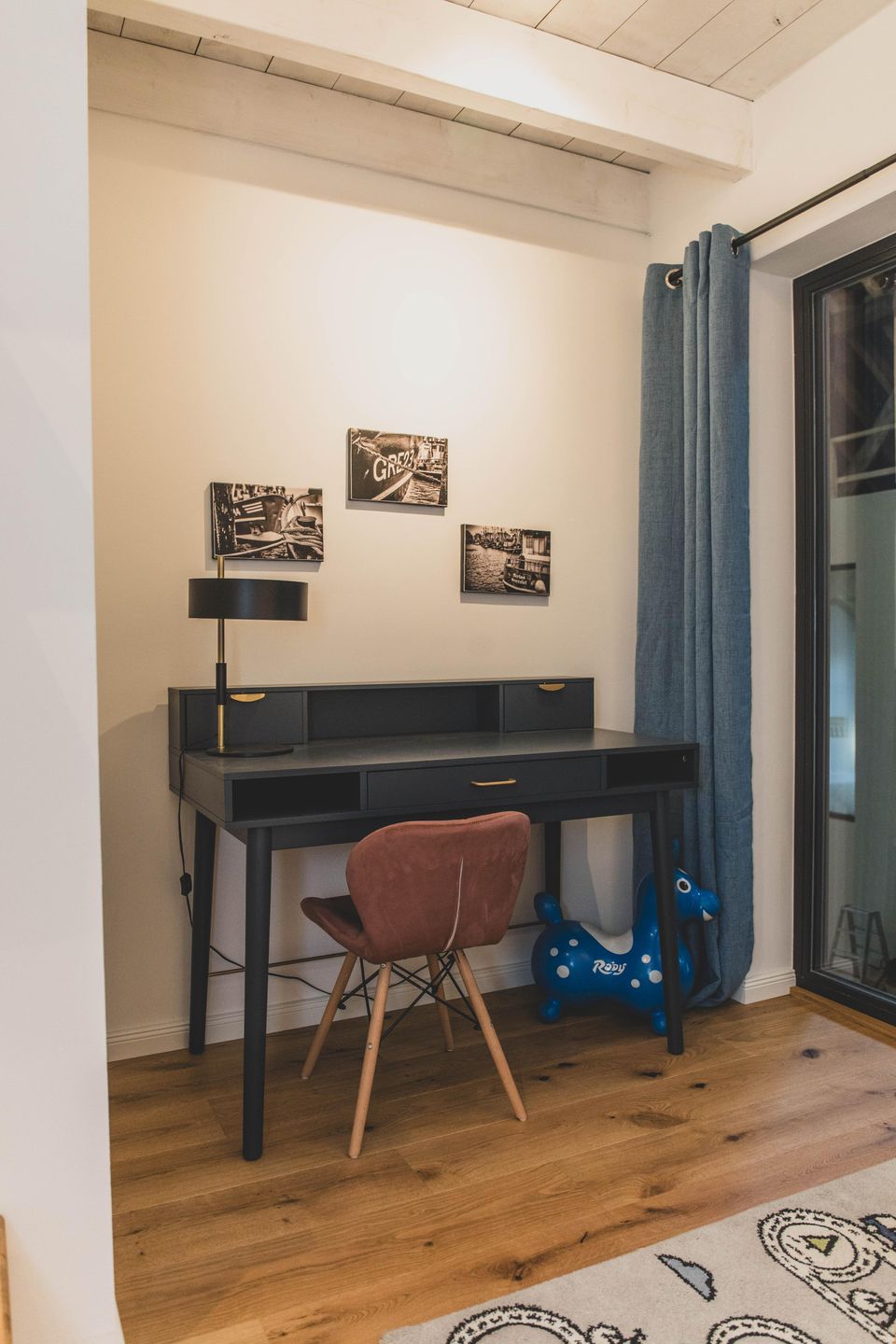 Sie betreten die zweigeschossige Unterkunft durch einen separaten Eingang auf einem abgeschlossenen, großzügigen Grundstück von 3.500 m². Während Ihres Aufenthaltes steht Ihnen ein eigener Privatparkplatz direkt vor Ort zur Verfügung. Die familienfreundliche Ausstattung richtet sich sowohl an Familien mit Kindern als auch an Paare und kleine Reisegruppen: Zwei Schlafzimmer mit Parkettboden und ein großzügiges Wohnzimmer mit gemütlicher Sofaecke bilden das Zentrum dieser Unterkunft. Die hochwertige Zentralheizung inklusive Fußbodenheizung und Sichtschutz an allen Fenstern sorgen zu jeder Jahreszeit für angenehmes Raumklima und Privatsphäre.