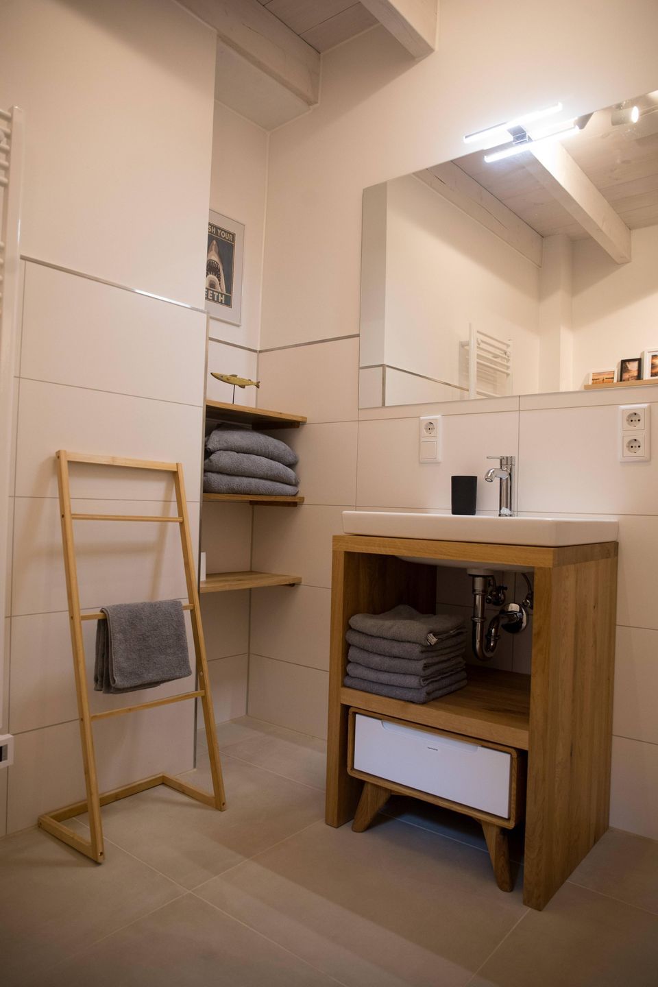 Für einen entspannten Start in den Tag oder einen geselligen Abend steht Ihnen eine offene, modern ausgestattete Küche zur Verfügung, die zum Wohnbereich hin offen gestaltet ist. Neben Herd (Ceran), Backofen, Kühlschrank mit integriertem Gefrierfach, Spülmaschine und Mikrowelle finden Sie auch eine Nespresso-Espressomaschine, Wasserkocher, Toaster sowie umfangreiche Küchenutensilien und Gewürze vor. Geschirr und Besteck sind in ausreichender Menge vorhanden, ebenso wie Geschirrtücher. Am Esstisch genießen Sie gemeinsam Ihre Mahlzeiten mit Blick in den liebevoll angelegten Garten.