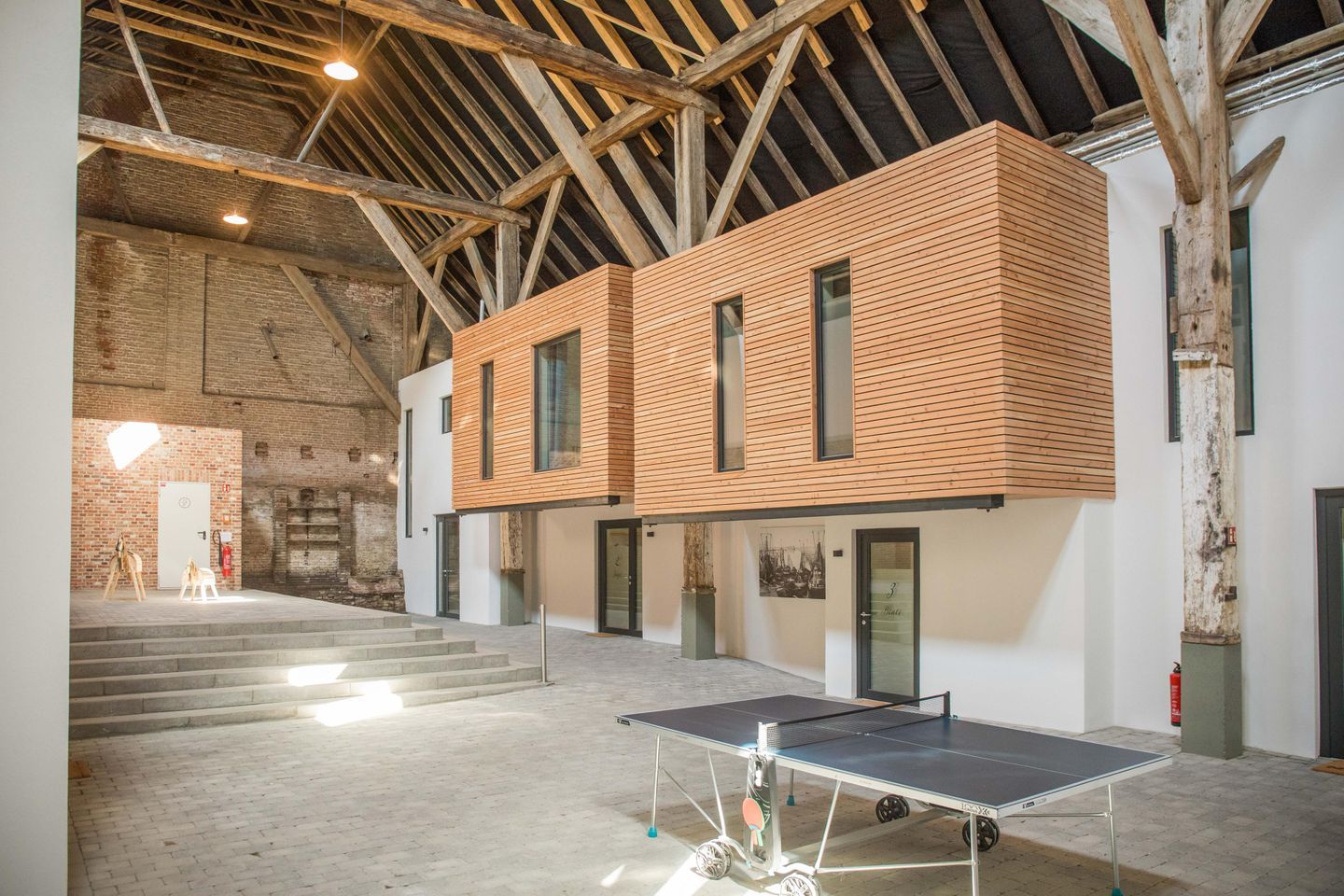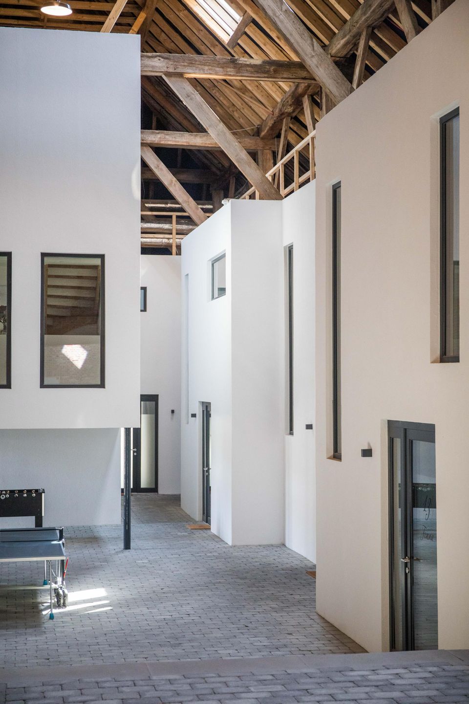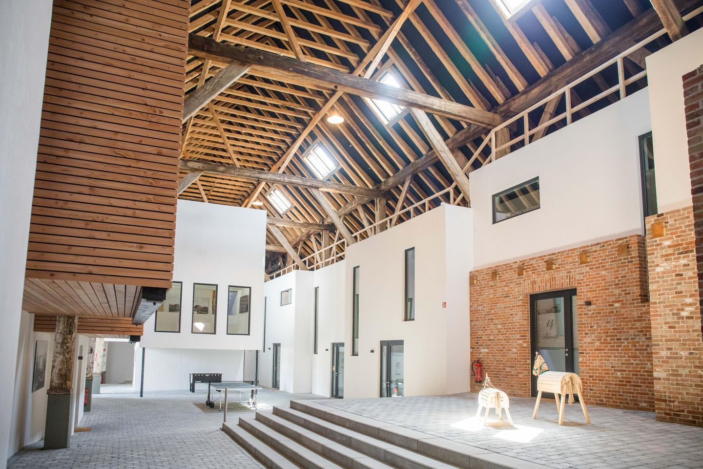 Alle Wohnungen sind Maisonette und zeichnen sich durch moderne, Grundrisse aus. Durch die Einbeziehung des historischen Ständerfachwerks in die Wohnraumgestaltung erhalten die Einheiten zudem eine besondere, unverwechselbare Note. Fußbodenheizung, Echtholz-Parkettböden sowie Armaturen und Keramik namhafter Hersteller versprechen einen hohen Wohnkomfort. Zu jeder Wohnung gehört eine großzügige Terrasse sowie ein PKW-Stellplatz mit Abstellschuppen. Die Außenanlagen des rund 4000 qm großen Grundstücks zeichnen sich besonders an der Südseite und Ostseite durch großzügige Grünflächen aus, die mit Sträuchern und Hecken geschmackvoll angelegt wurden. Ein alter Baumbestand rundet das Gesamtbild ab.