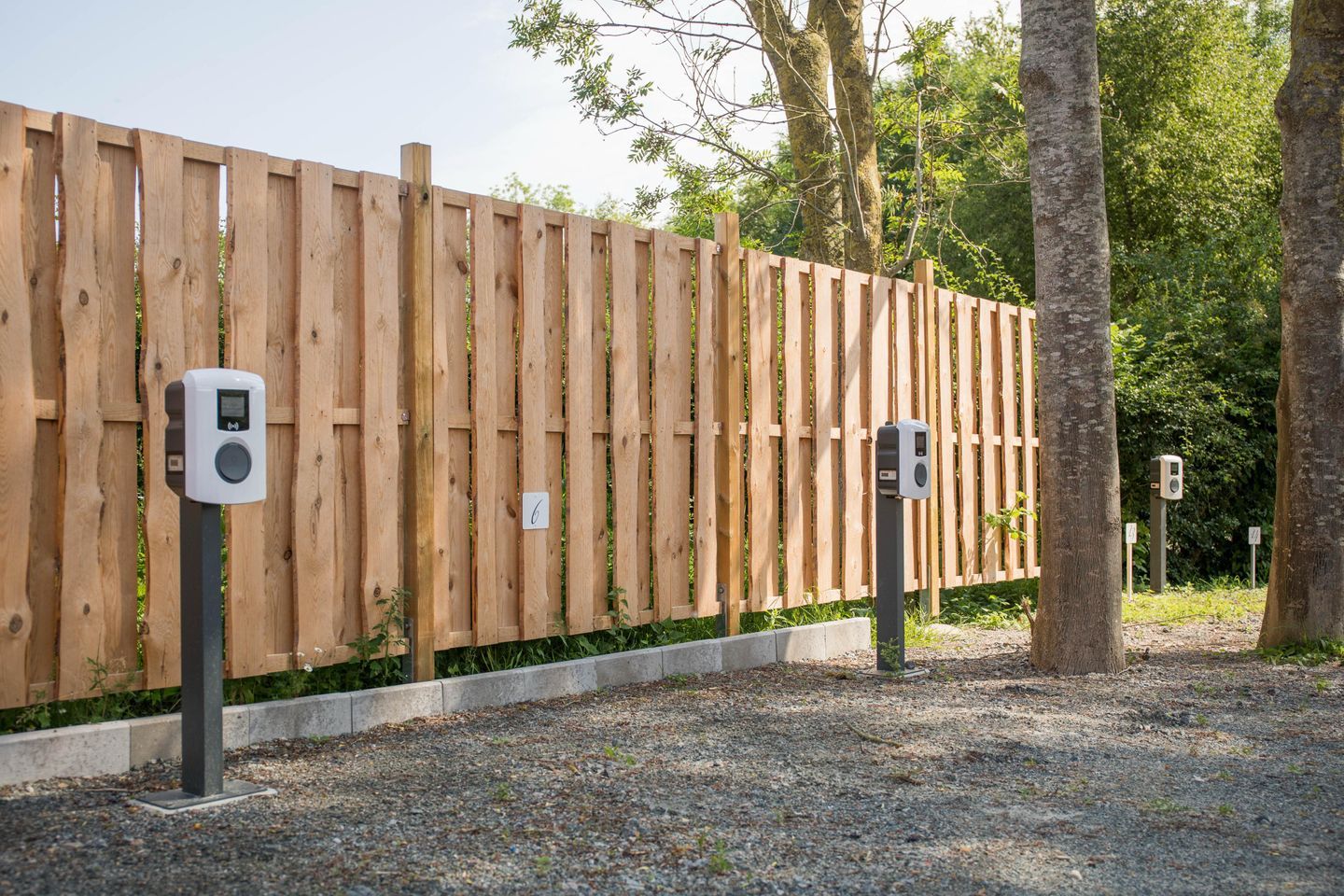 Auf dem Parkplatz befinden sich mehrere Ladesäulen für E-Autos.