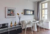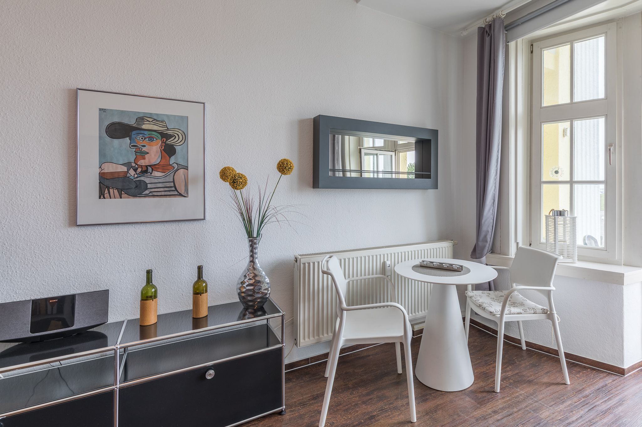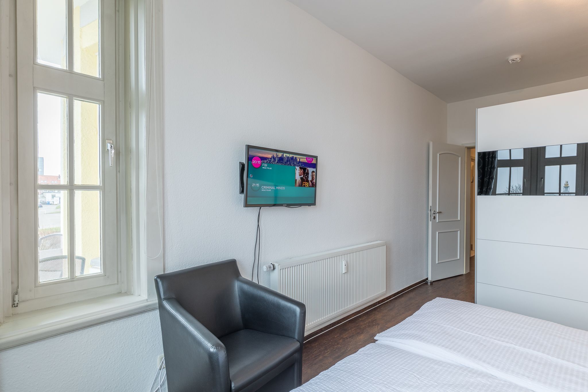 Die modern eingerichtete 3-Raum Wohnung (mit Teilseesicht und kleinem Balkon) mit einer Größe von ca. 80 m² Wohnfläche ist komplett bis zu 4 Personen ausgestattet. 1 Wohnzimmer mit Essplatz, gemütlichem Sofa, TV, Stereoanlage und Zugang zum kleinen Balkon zur Seeseite, 1 Schlafzimmer mit Doppelbett und TV, 1 Schlafzimmer mit 2 Einzelbetten, separate große Küche (Cerankochfeld, Backofen, Mikrowelle, Kaffeemaschine und Wasserkocher) mit Essplatz, 1 Bad mit Badewanne und WC, Nichtraucherwohnung, keine Haustiere, PKW-Stellplatz direkt am Haus.