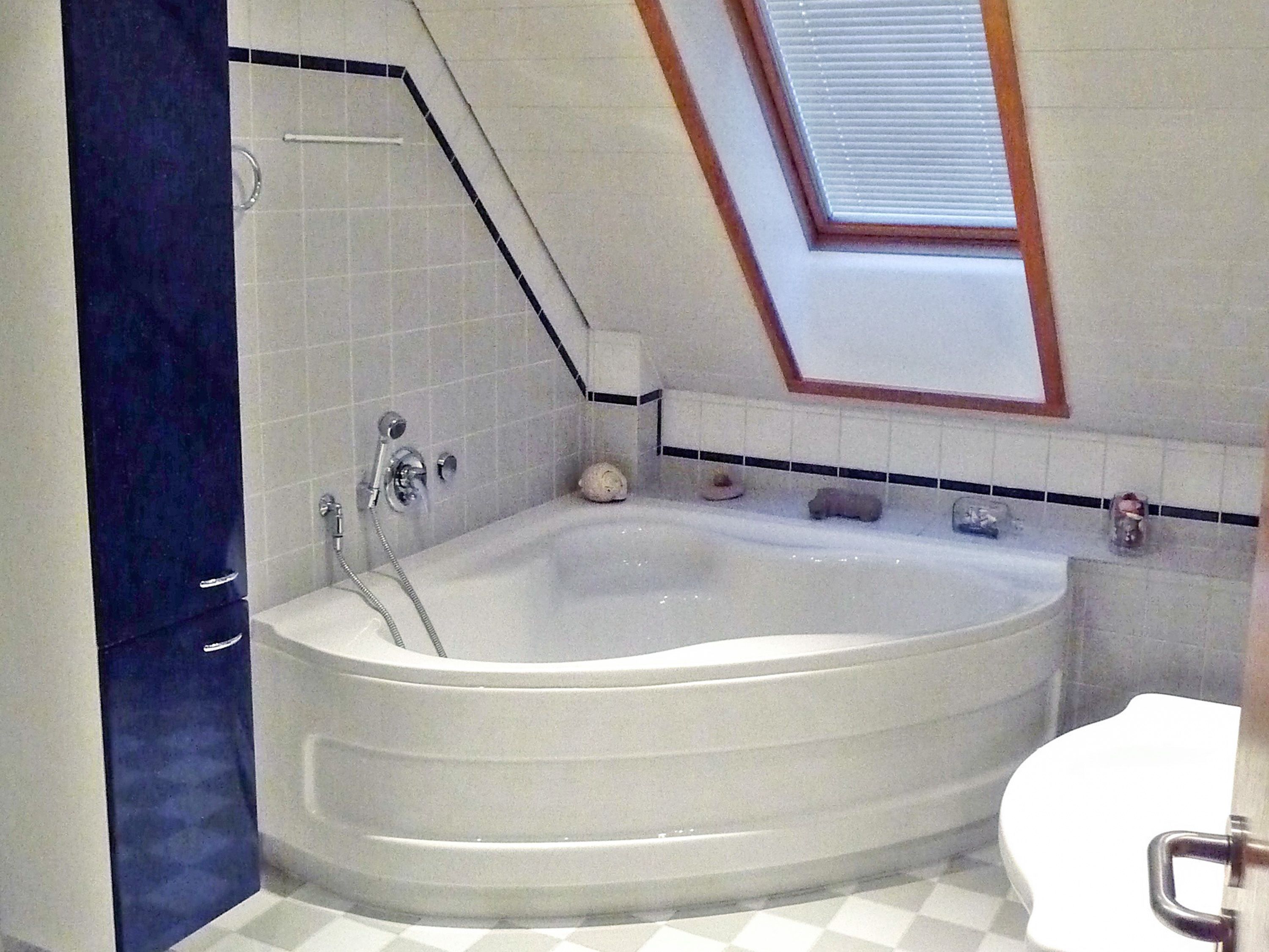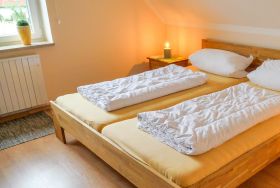Ebenfalls im Obergeschoss befinden sich zwei behagliche Schlafzimmer mit je einem Doppelbett (180x200). Eines der Schlafzimmer verfügt zusätzlich über ein Schlafsofa (80x200), das ideal für eine weitere Person ist. Das moderne Badezimmer ist ein kleines Wellness-Highlight mit einer Dusche, einer Eckbadewanne und Fußbodenheizung perfekt, um die Seele baumeln zu lassen. Ein zusätzliches Gäste-WC sorgt für noch mehr Komfort.