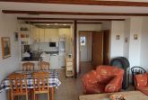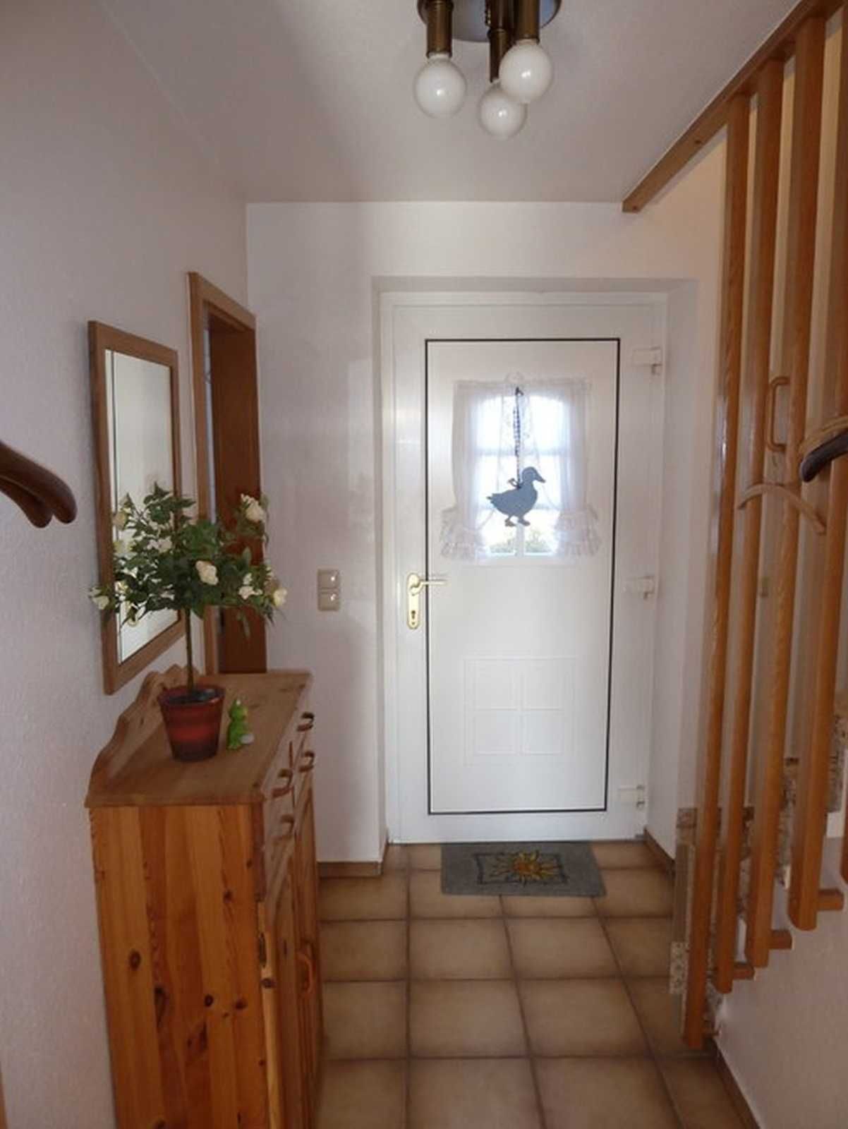 Großer Wohnraum mit Kaminofen (Sat-LED-TV, Radio mit CD). Essplatz und komplett eingerichtete Küche (Kühlschrank m. extra Gefrierfach, 4 Platten-Kochfeld und Backofen, Geschirrspüler und diverse Elektrokleingeräte). Flur mit Garderobe, Bad mit Dusche und WC, Waschmaschine.