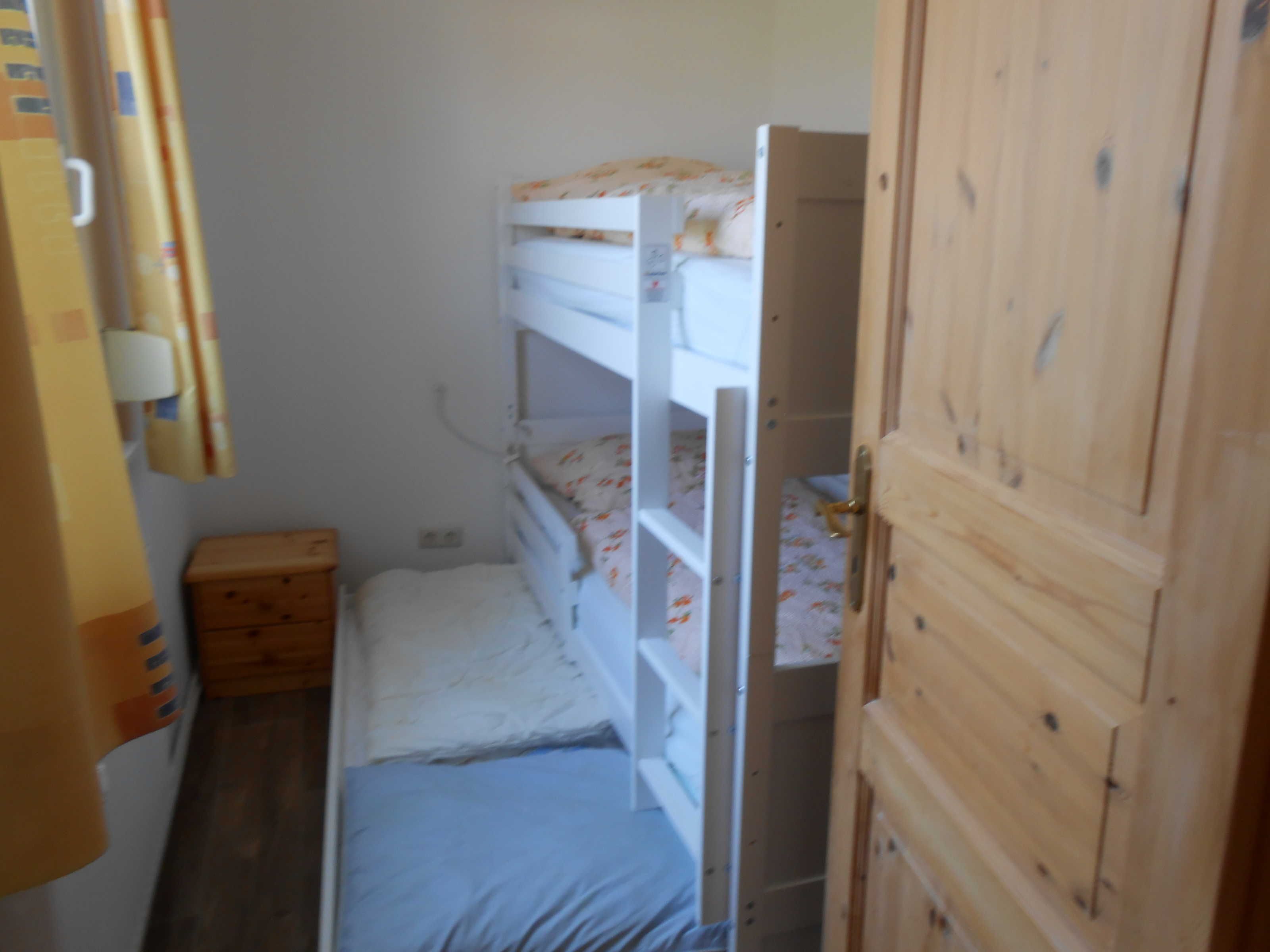 Unser Bungalow verfügt über 2 Schlafzimmer, ein Kinderzimmer mit Etagenbett. Kinderbett oder eine zusätzliche Schlafmatratze finden in einem der Schlafzimmer noch Platz. Der Wohnraum ist gemütlich eingerichtet mit Essecke, TV und CD-Radio. Die separate Küchenzeile ist gut sortiert ausgestattet mit Geschirrspüler, Ceranfeld, Backofen, Wasser- und Eierkocher, Toaster und Kaffeemaschine. Mikrowelle auf Wunsch. Im Duschbad steht Ihnen ein Fön zur Verfügung. Auf der Südterrasse finden Sie Gartenmöbel und einen Grill.