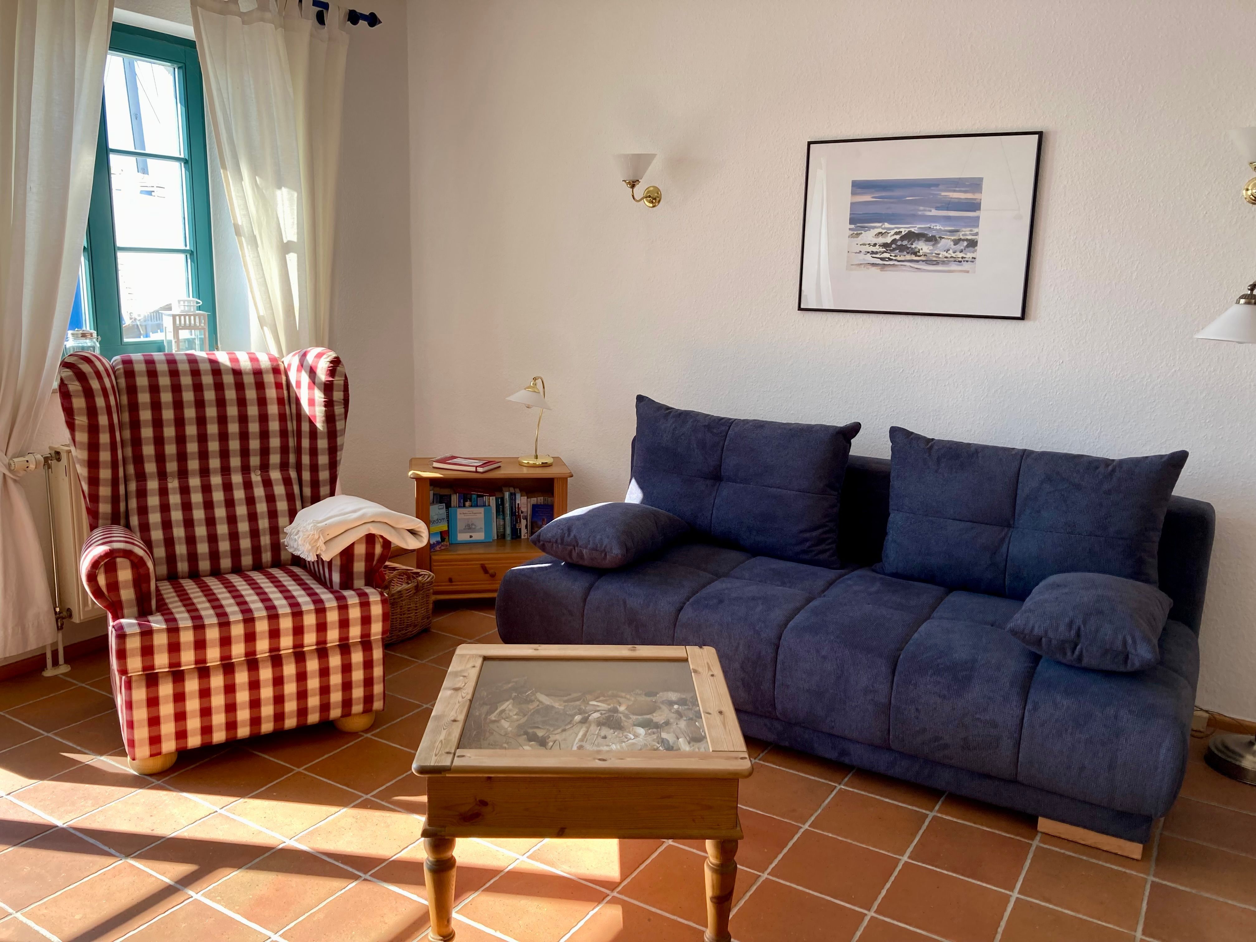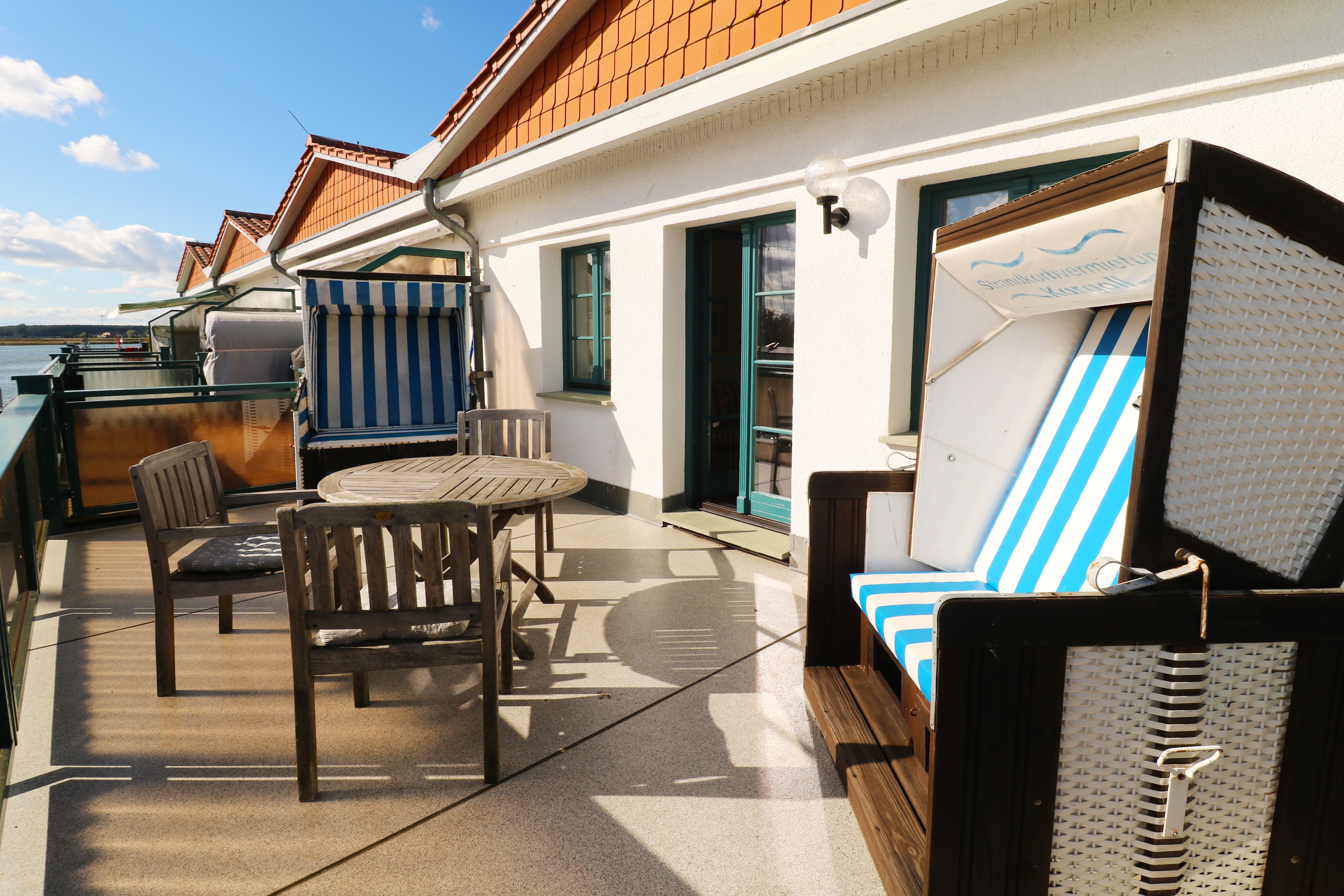 Ein besonderes Highlight ist der große Balkon mit Sitzmöbeln und zwei Strandkörben, von dem aus Sie den Blick auf den Yachthafen und die vorbeiziehenden Boote genießen können. Die Küche ist gut ausgestattet und bietet alles, was Sie für die Zubereitung von Mahlzeiten benötigen. Das Badezimmer verfügt über eine Dusche.