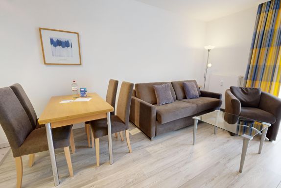 Ferienwohnung Binzer Sterne 33 für bis zu 4 Personen im 1. OG (2 Zimmer / 40 m²) des Appartementhauses Binzer Sterne, 1 Schlafzimmer, Parkplatz (gegen Gebühr) und freies WLAN.