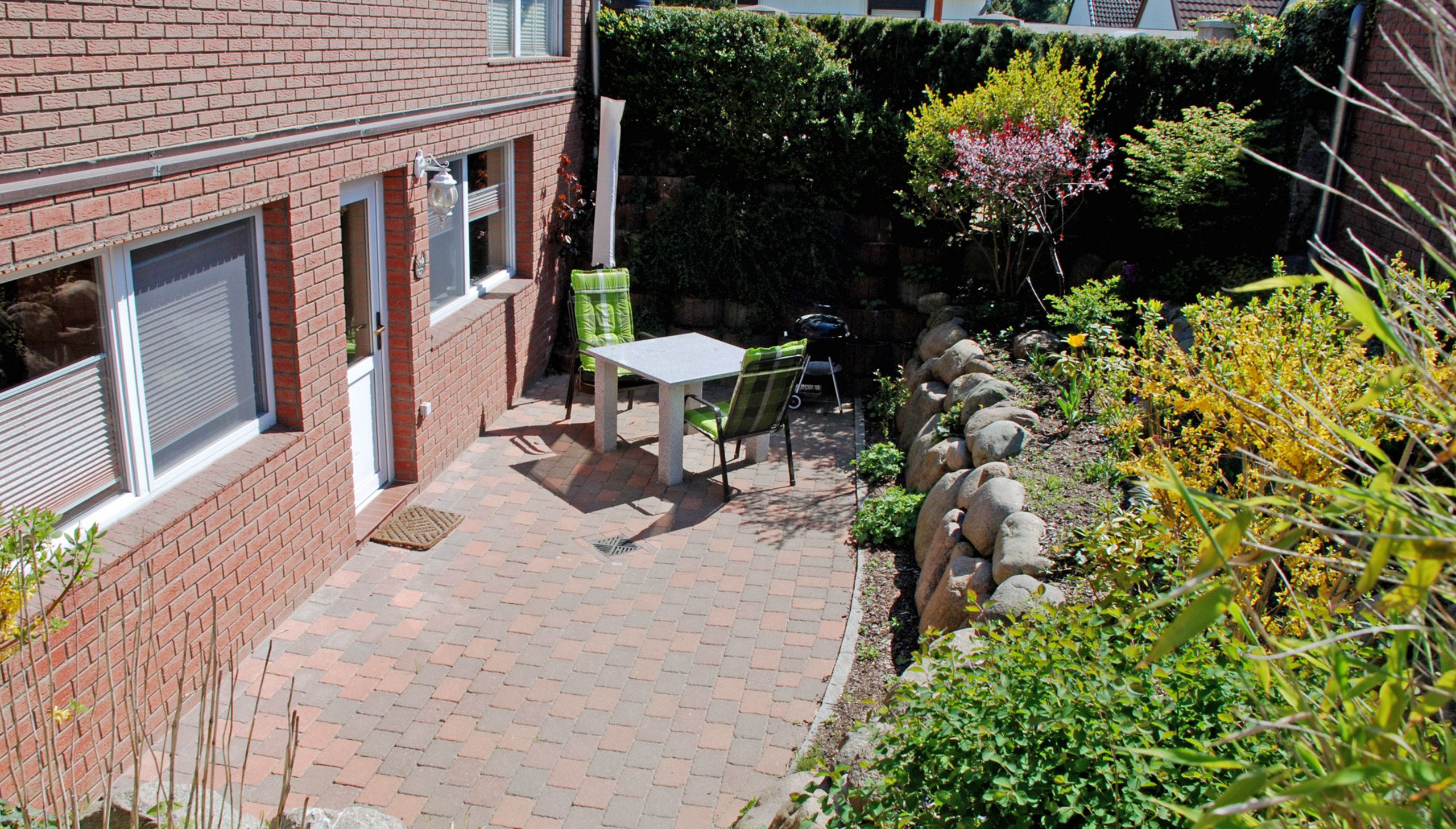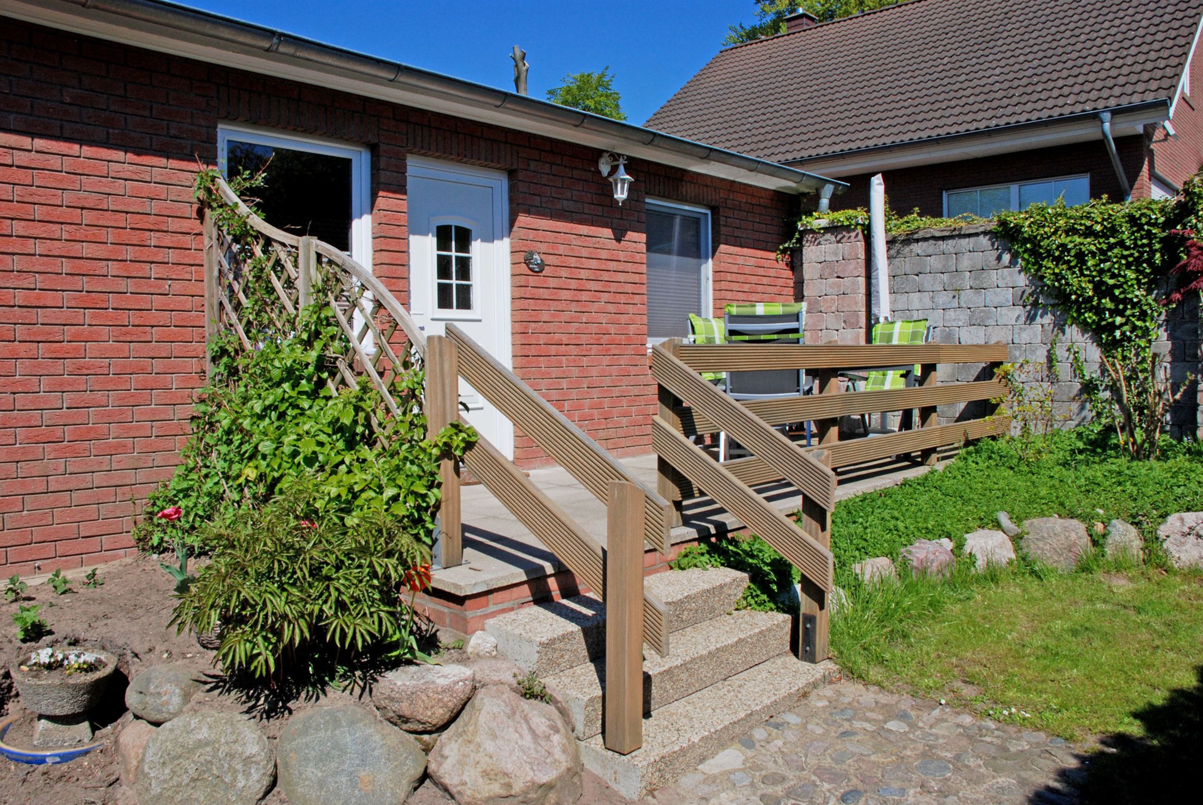 Zu jeder Ferienwohnung gehört eine Terrasse mit Gartenmöbeln bzw. eine Sitzgelegenheit im Garten.