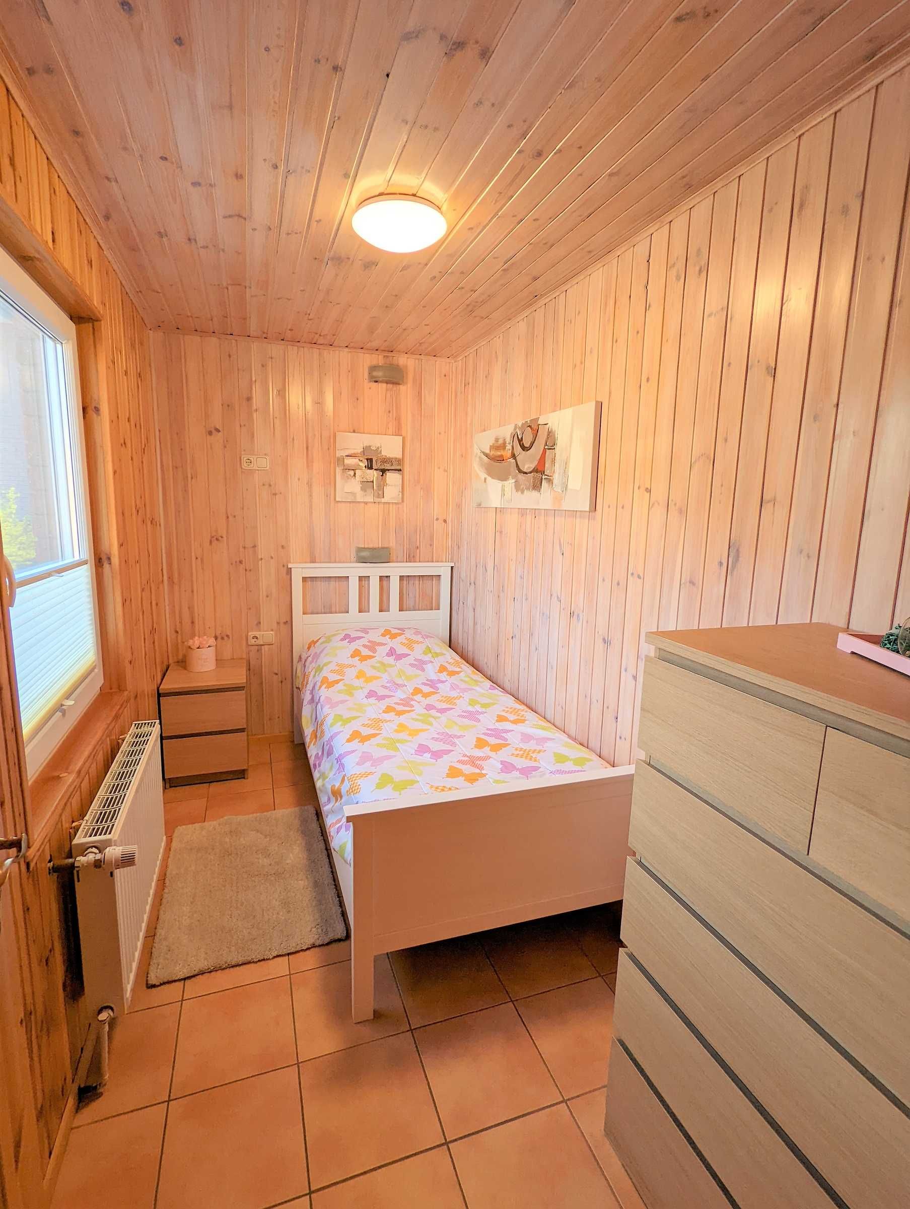 Im zweiten Schlafzimmer stehen ein Einzelbett und ein Kleiderschrank.