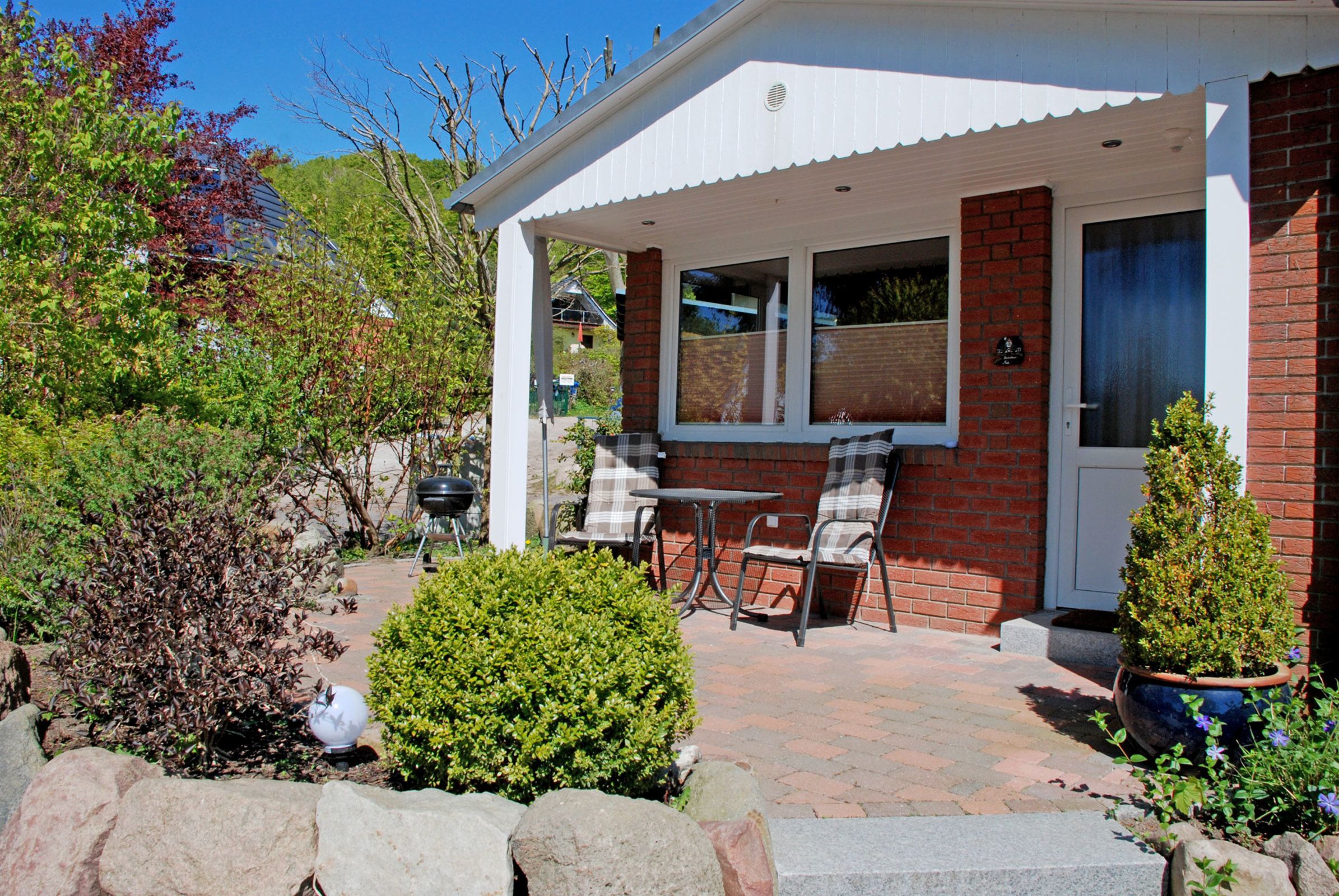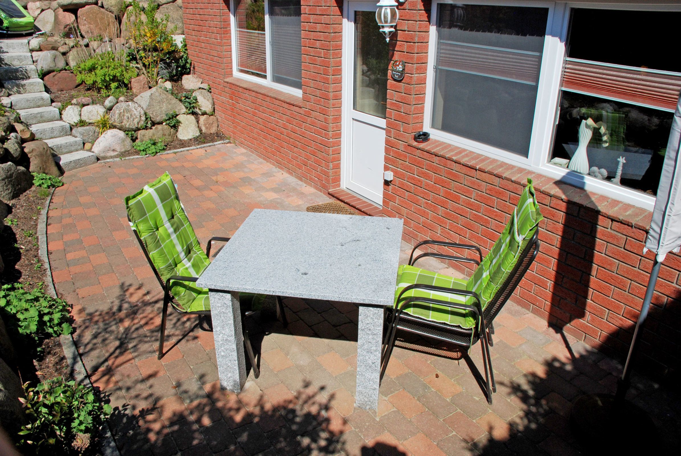 Zu jeder Ferienwohnung gehört eine Terrasse mit Gartenmöbeln bzw. eine Sitzgelegenheit im Garten.