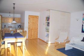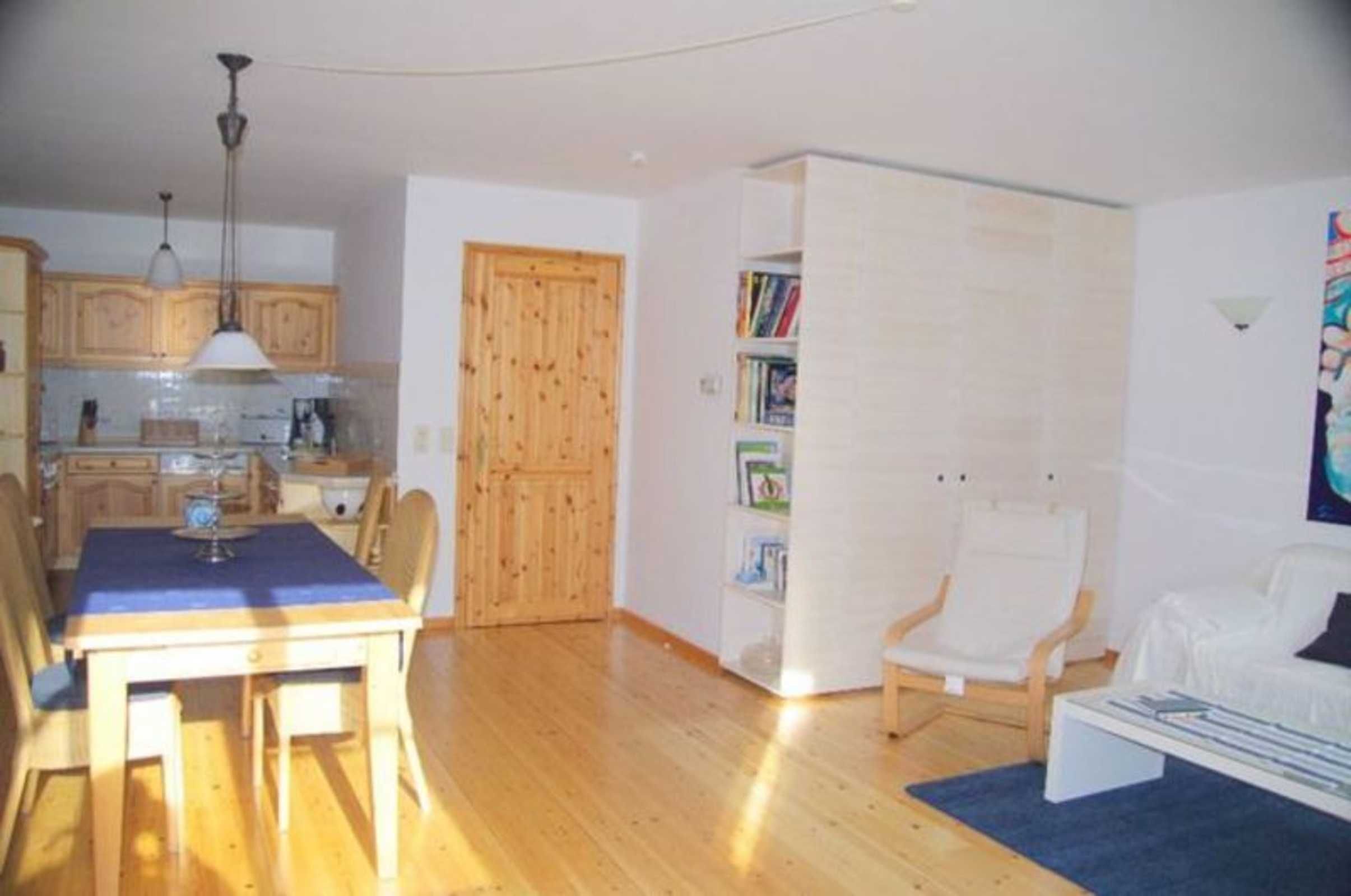 Die liebevoll und modern eingerichtete Wohnung für 2 bis 3 Personen (70 m2) hat einen sehr großzügigen Wohn- und Essbereich mit anschließender gut ausgestatteter Küche, ein separates Schlafzimmer sowie ein saniertes Bad mit Wanne und Dusche. Direkt an den Wohn-/Essbereich angrenzend lädt eine ca. 20 m2 große Terrasse, die von landschaftstypischen Bäumen und Sträuchern umgeben ist, zum Verweilen im Freien ein.