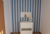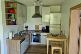 Das Wohnzimmer ist mit einer Sitzecke, Fernseher und Kamin (statt Heizung) ausgestattet. Die moderne Küchenzeile verfügt über einen 4-Platten-Ceranherd mit Backofen, Kühlschrank mit Gefriermöglichkeit und Spülmaschine, Kaffeemaschine, Toaster etc. und ist im Wohnzimmer integriert. Das Bad mit Dusche/WC ist vollständig gefliest und mit einer Fußbodenheizung ausgestattet. Im Schlafzimmer befindet sich ein Doppelbett (1,40 m x 2,00 m) und eine Kleiderkommode. Das vorhandene Kinderreisebett oder die Aufbettung kann problemlos im Schlafzimmer aufgestellt werden (maximale Belegung 3 Personen). Die Terrasse und der gesamte Garten kann mitbenutzt werden. Bettwäsche und Handtücher sind bitte vom Gast mitzubringen. Der Parkplatz befindet sich auf dem Grundstück.