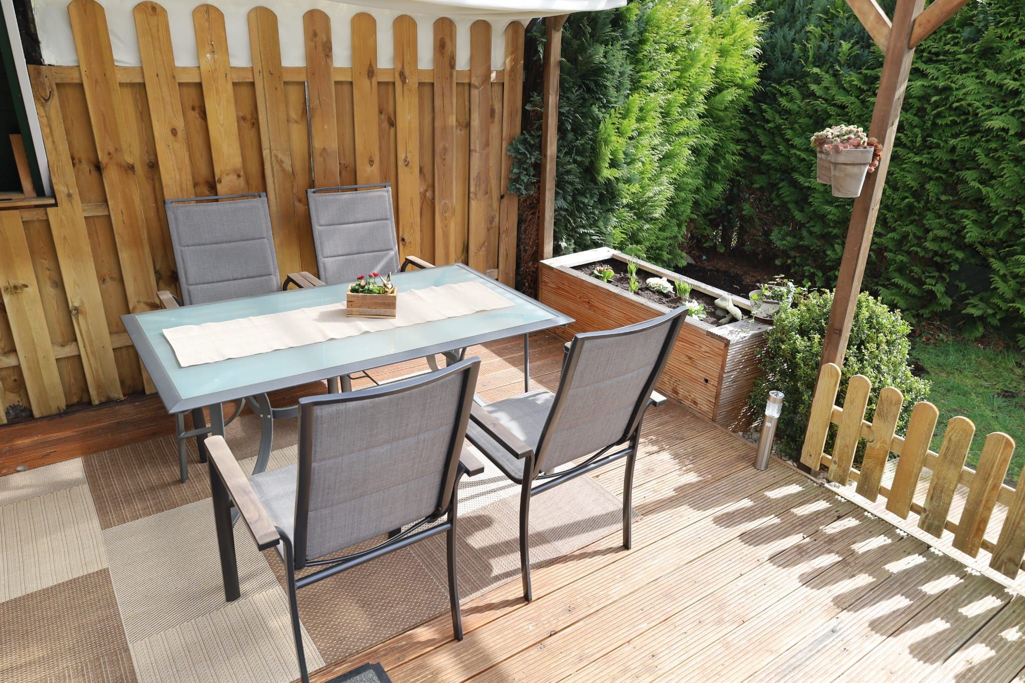 Auf der überdachten Terrasse kann man herrlich entspannen und die Sommerabende genießen. Außer den Gartenmöbeln steht Ihnen ein Grill zur Verfügung.