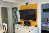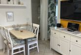 Der Bungalow ist mit einer gemütlichen Wohnküche mit Couch, Flachbild-TV, DVD-Player, Esstisch mit 4 Stühlen, Toaster, Kaffeemaschine sowie Plattenherd ausgestattet. Im Bungalow befinden sich 2 Schlafzimmer. Ein Zimmer mit Doppelbett und ein Zimmer mit Etagenbett. Das Bad ist mit Dusche, WC und Fön ausgestattet.