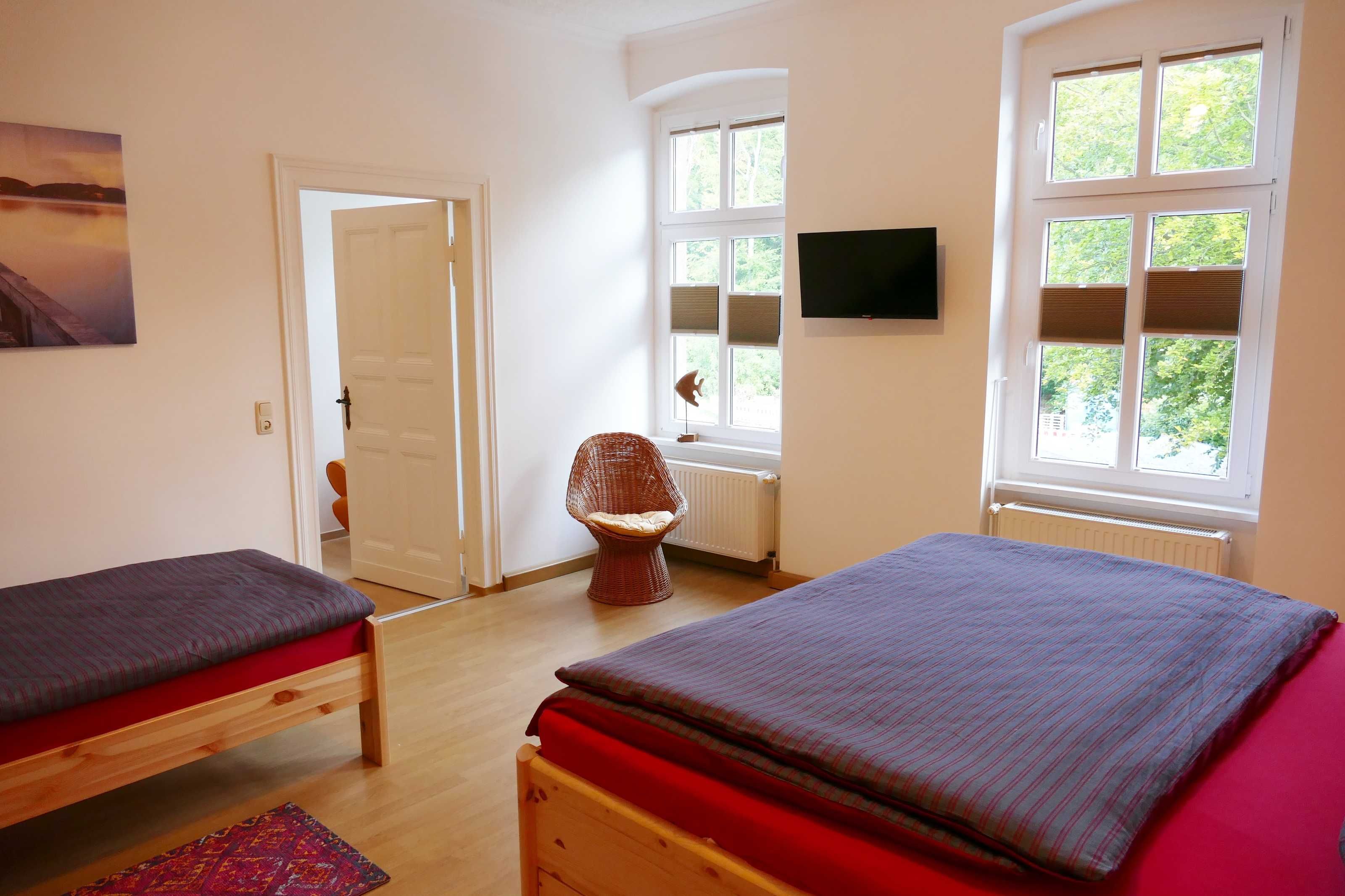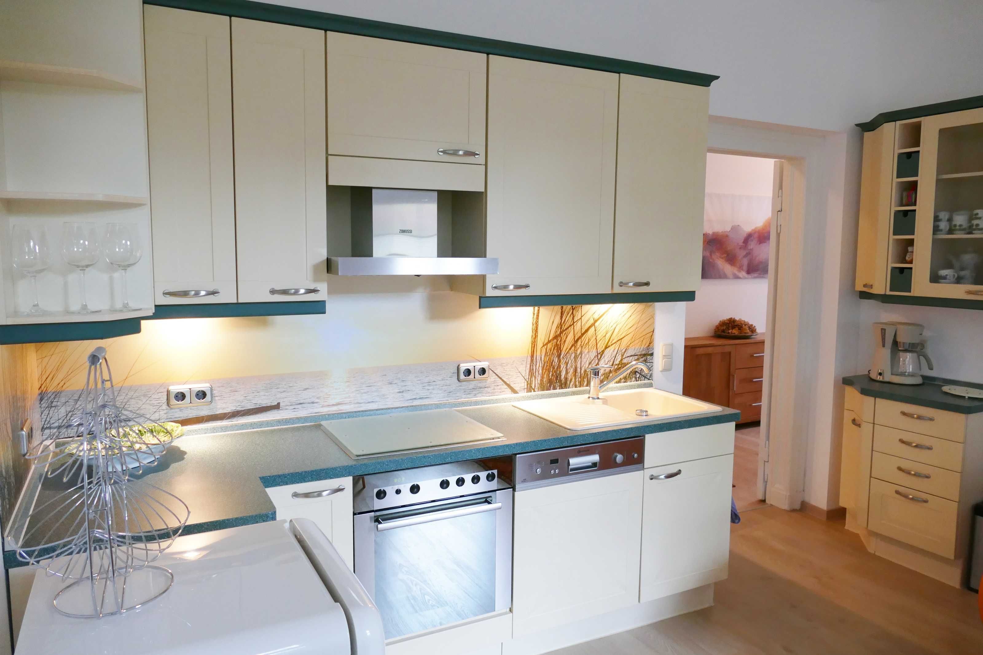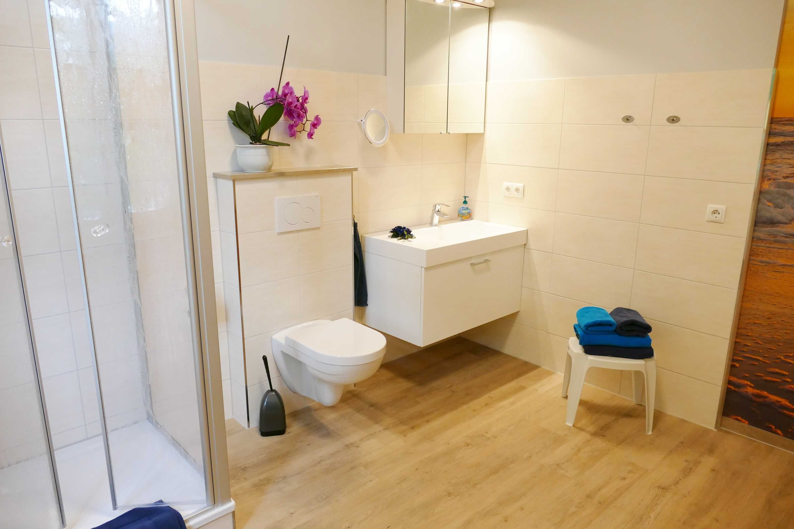 Hell und behaglich - Mit großzügigen 70 qm bietet diese Ferienwohnung bequem Platz für zwei bis drei Personen und sie befindet sich im ersten Stock des Hauses des Vermieters. Die Wohnung verfügt über ein einladendes Wohnzimmer mit einer gemütlichen Couchecke, einem Flachbild-TV, einer Essecke und einer offenen Küche. Diese ist bestens ausgestattet mit einem Elektroherd, Backofen, Spülmaschine, Kühlschrank, Kaffeemaschine, Wasserkocher und Toaster - alles, was Sie für einen angenehmen Aufenthalt benötigen. Im Schlafzimmer erwarten Sie ein komfortables Doppelbett und ein Einzelbett, sowie ein weiterer Flachbild-TV für entspannte Abende. Das geräumige Tageslichtbad ist mit einer Dusche und WC ausgestattet und sorgt für zusätzlichen Komfort. Genießen Sie auch die Terrasse auf dem Grundstück, die zur Gemeinschaftsnutzung zur Verfügung steht. Auf Anfrage können Sie hier sogar grillen! Ihr Fahrzeug können Sie bequem unter einem Carport direkt am Haus parken. WLAN ist selbstverständlich inklusive.