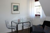 Die Zweiraum-Ferienwohnung liegt im Dachgeschoss (1. OG). Die Treppe nach oben ist bequem. Sie kommen durch einen Flur in einen kombinierten Wohnschlafraum mit Sofa, Küchenzeile und Esstischgruppe.