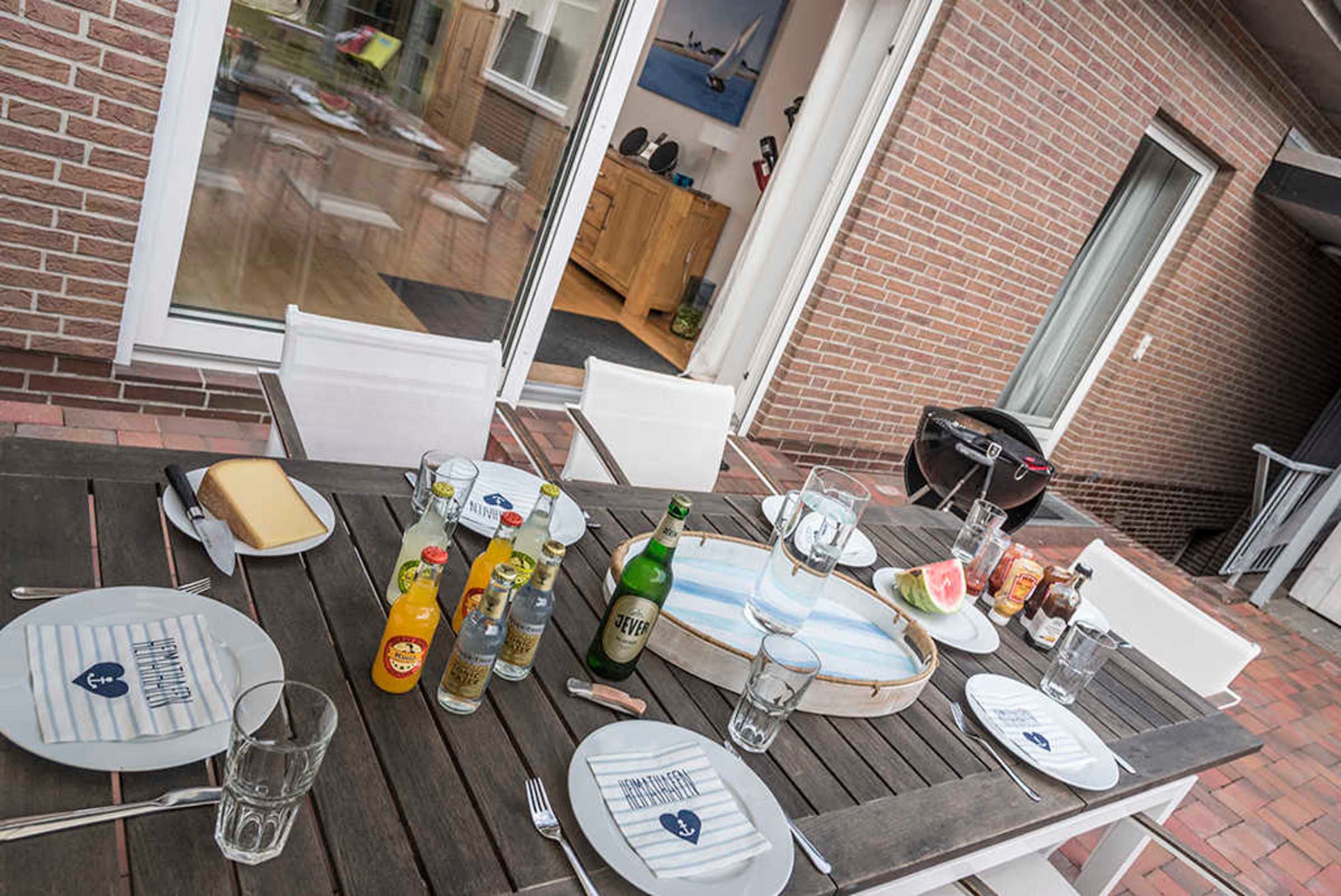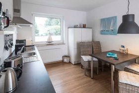 Im großzügigen Wohnzimmer mit Kamin kann man sich treffen, Tee trinken oder zusammen essen am großen Tisch für 12 Personen. In der geräumigen Küche mit Stehtisch lässt sich hervorragend zusammen kochen oder einfach schnacken. Auf der Terrasse, im Garten oder in der sog. „Lounge“ geht am gemeinsamen Grillen fast kein Weg vorbei. Die Kinder können jederzeit raus in den großen, eingewachsenen Garten.