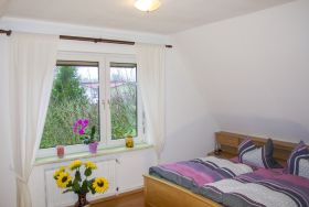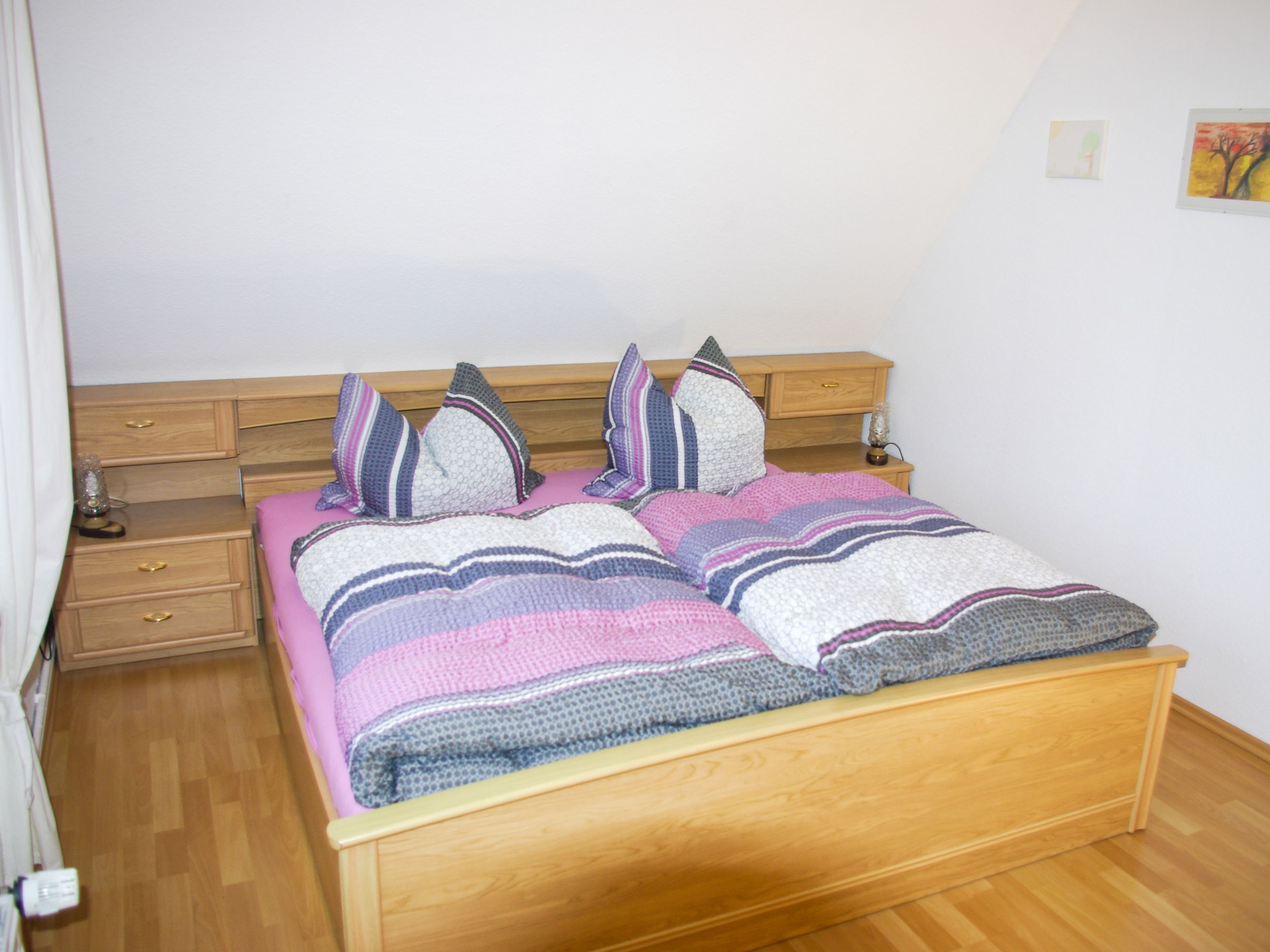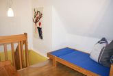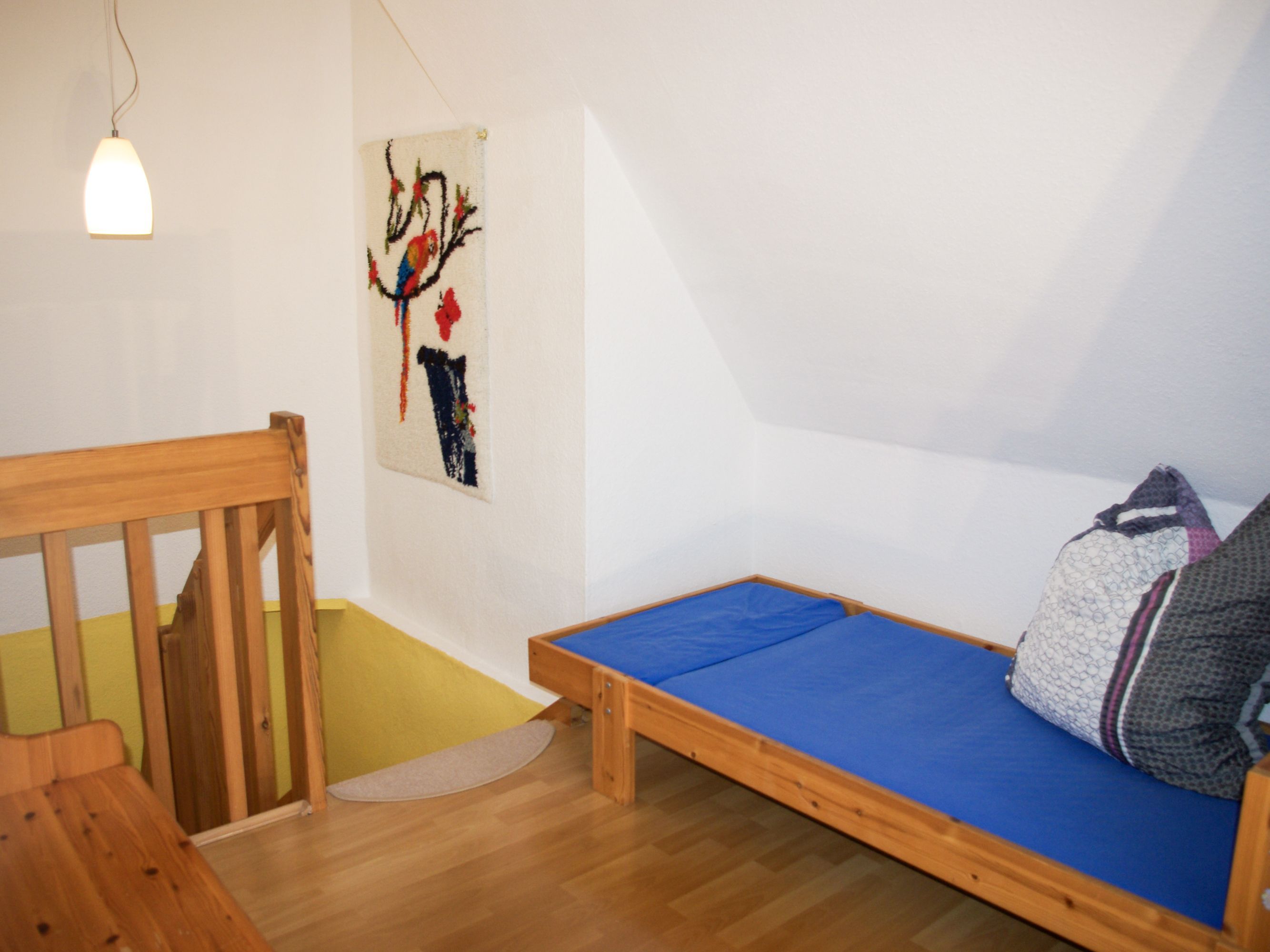 Die Ferienwohnung Joachim ist eine gemütliche Unterkunft für bis zu 2 Erwachsene und ein Kind bis 14 Jahre. Die Wohnung erstreckt sich mit 60 m² über zwei Etagen: Im Erdgeschoss erwartet dich ein gemütliches Wohnzimmer mit Sofa und TV der perfekte Ort, um nach einem erlebnisreichen Tag zu entspannen. Die separate Küche ist voll ausgestattet und bietet alles, was du für die Zubereitung deiner Mahlzeiten brauchst: einen Kühlschrank, Backofen, Herd, Spülmaschine, Mikrowelle, Toaster, Wasserkocher, Kaffeemaschine sowie nützliche Küchenhelfer. Das moderne Badezimmer verfügt über eine ebenerdige Dusche und ein WC. Im Obergeschoss befindet sich der Schlafbereich, der über eine Treppe direkt betreten wird und somit nicht separat abgetrennt ist. Hier findest du ein bequemes Doppelbett (180x200), ein Einzelbett (80x180) sowie einen großen Kleiderschrank mit ausreichend Platz für deine Garderobe. Auf der eigenen Terrasse kannst du die frische Luft genießen ausgestattet mit einem Grill, einem Sonnenschirm und bequemen Sitzmöbeln.