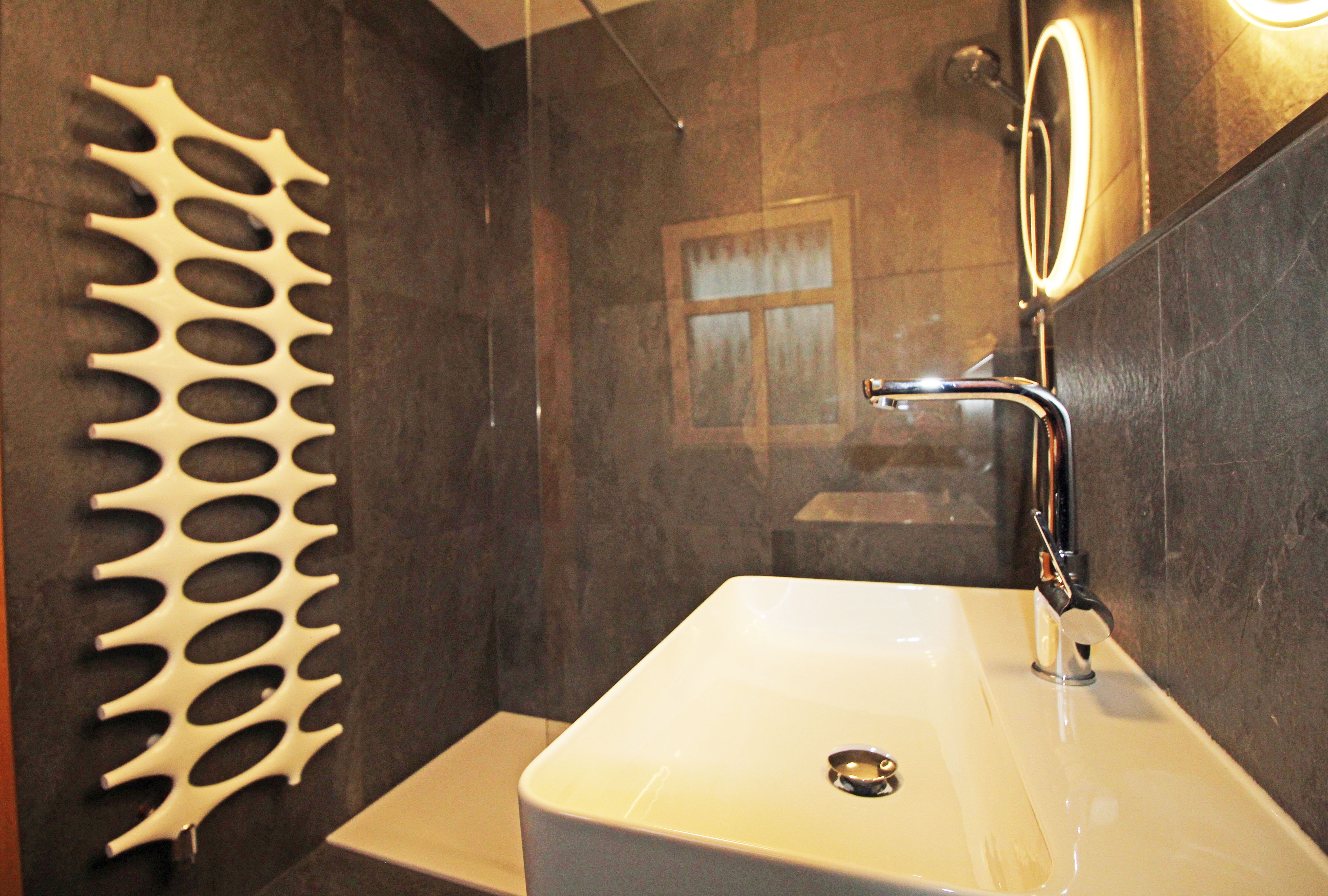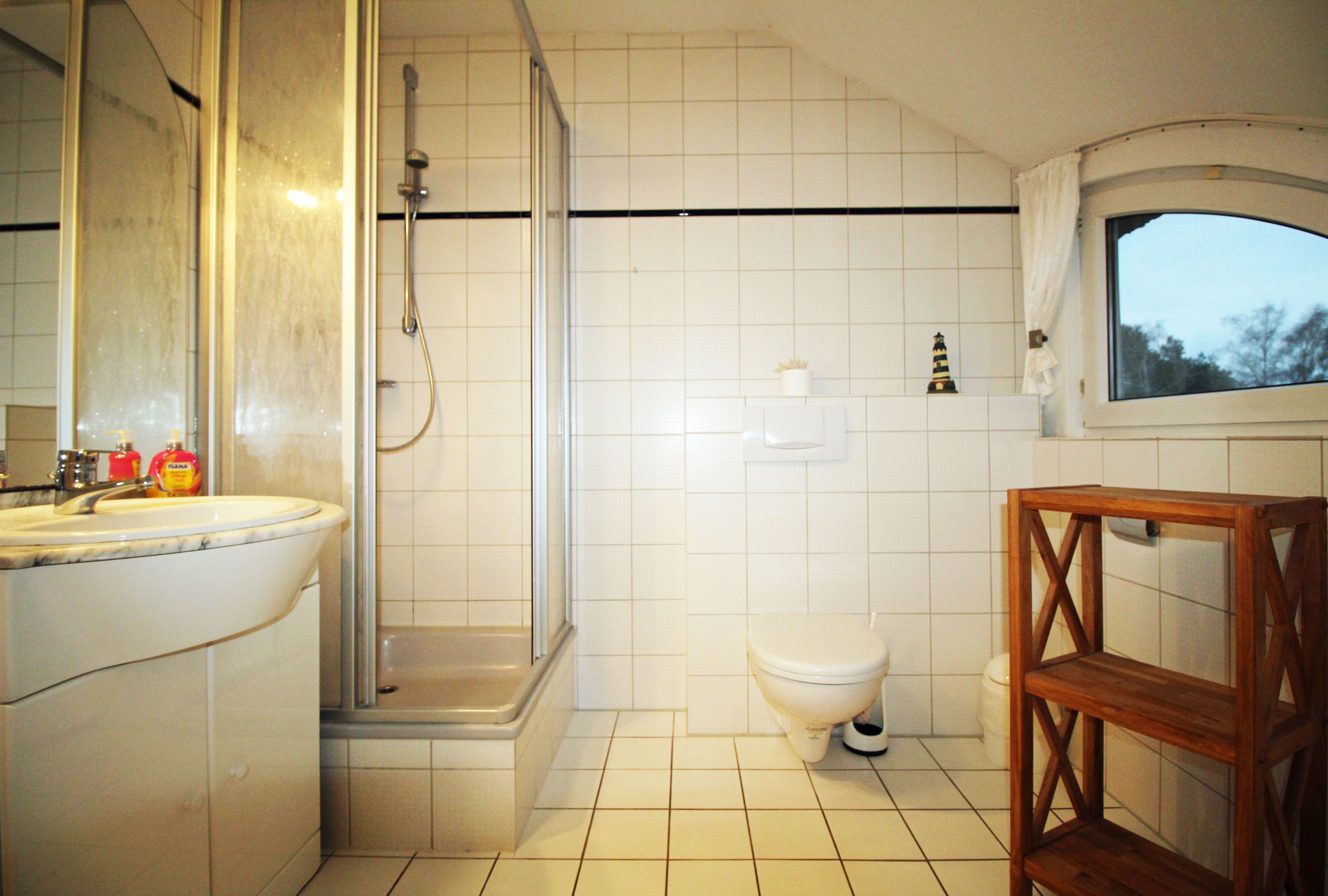 - Duschbad im OG mit Waschtisch, Handtuchheizkörper, WC