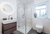 - Duschbad im OG mit Waschtisch, Handtuchheizkörper, WC