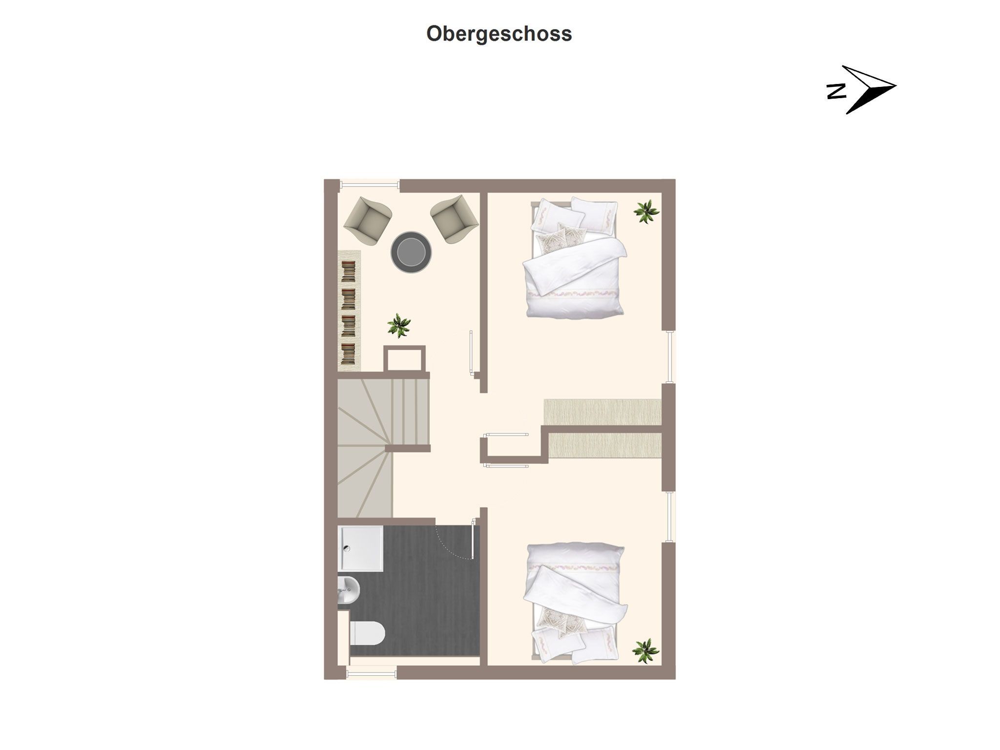- 2 Schlafzimmer mit je einem Boxspringbett 1,80 x 2,00 m