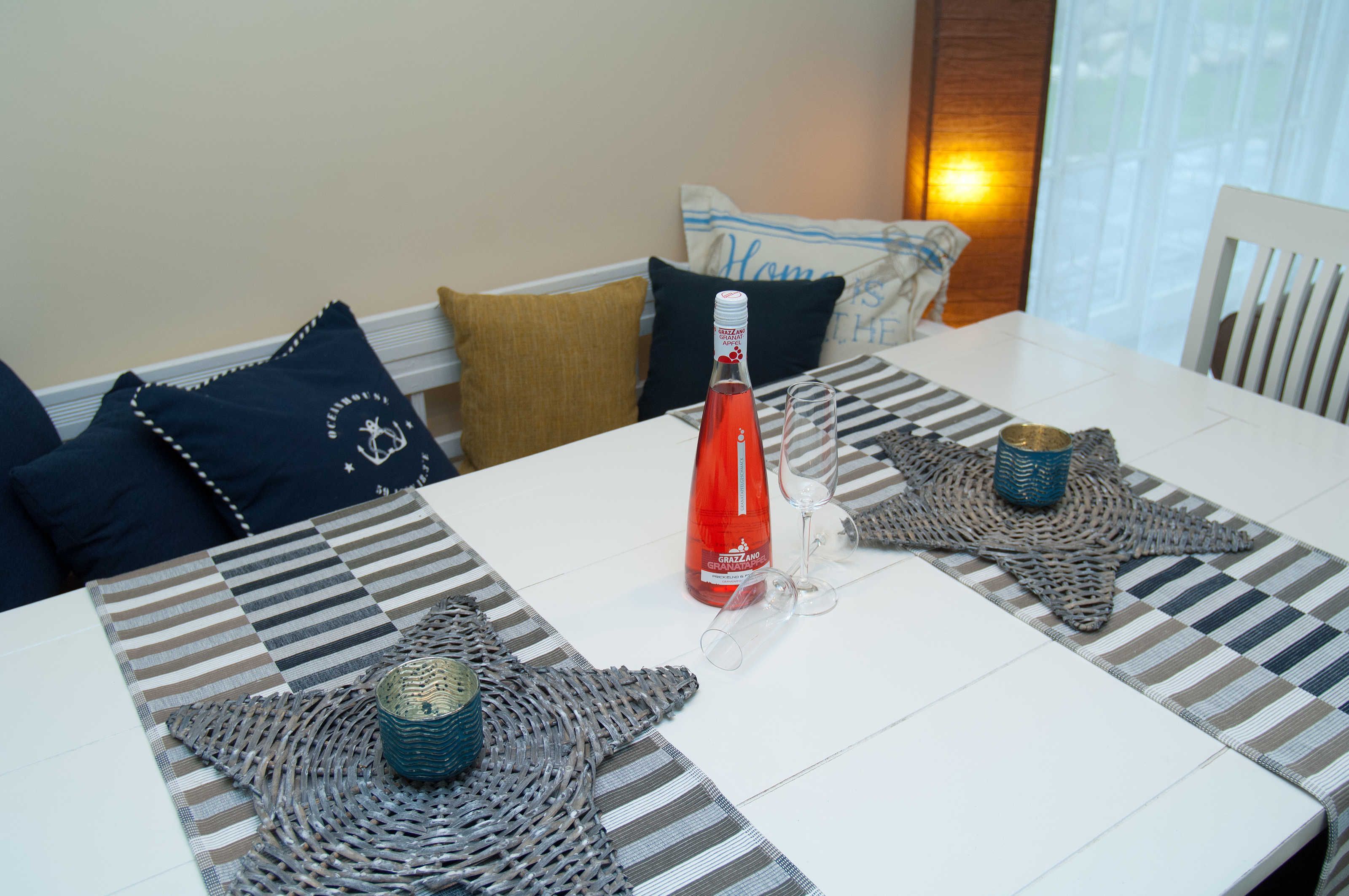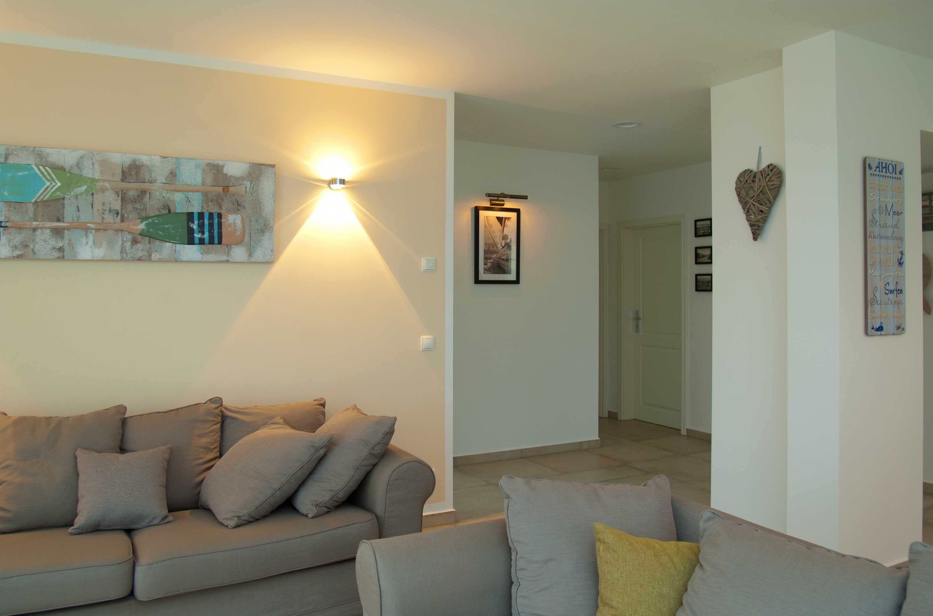 Die geschmackvoll eingerichtete Ferienapartments verfügen jeweils über einen großzügigen Wohnbereich mit offener, vollausgestatteter Küche sowie einem Essbereich für gemütliche Abende. Für das Genießen des Sonnenuntergangs oder auch entspannte Grillabende stehen Ihnen eine Terrasse bzw. ein Essbereich im Freien zur Verfügung.