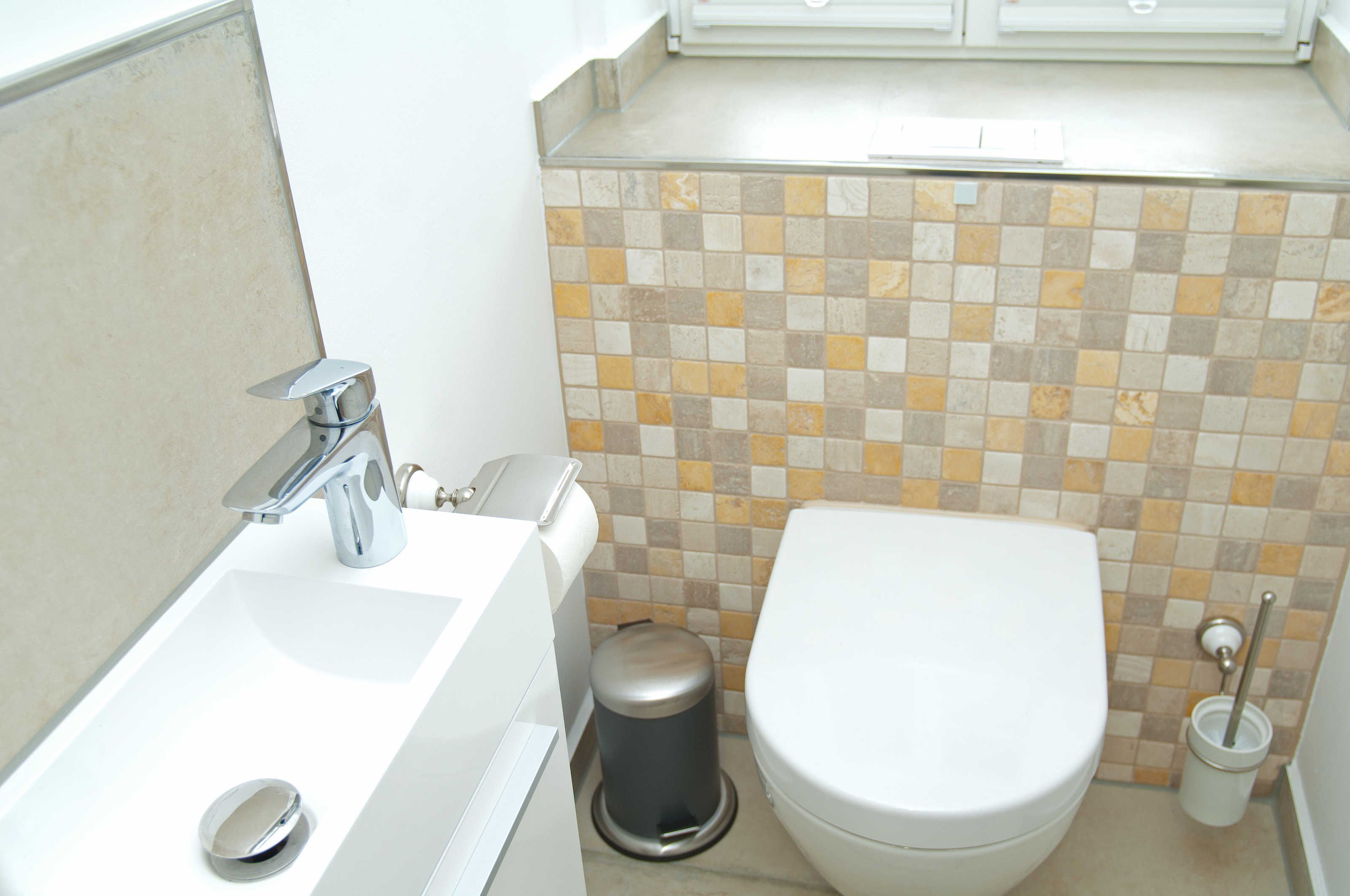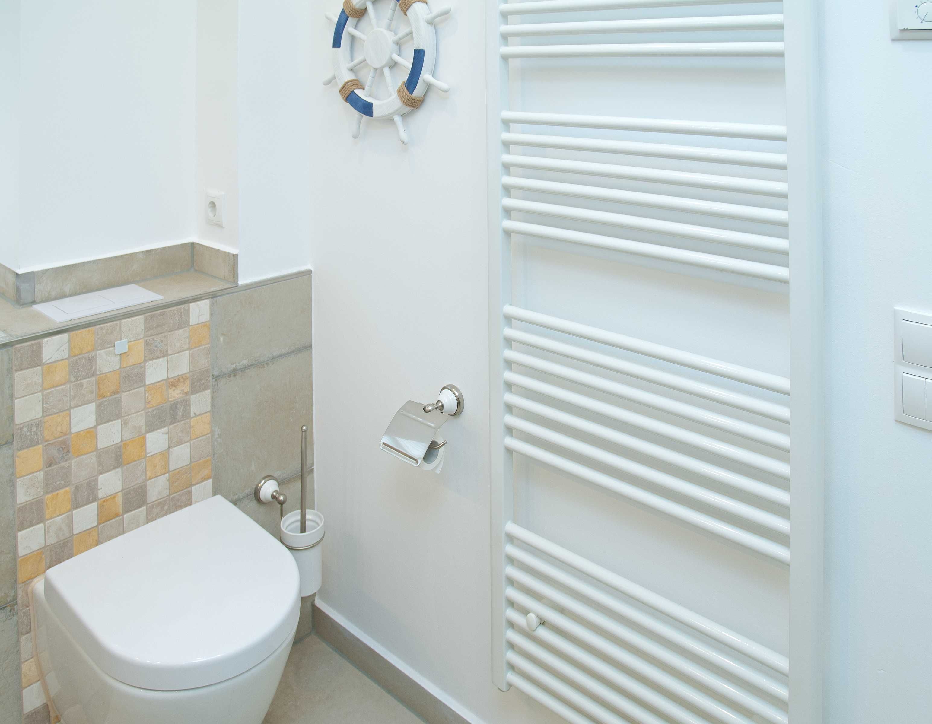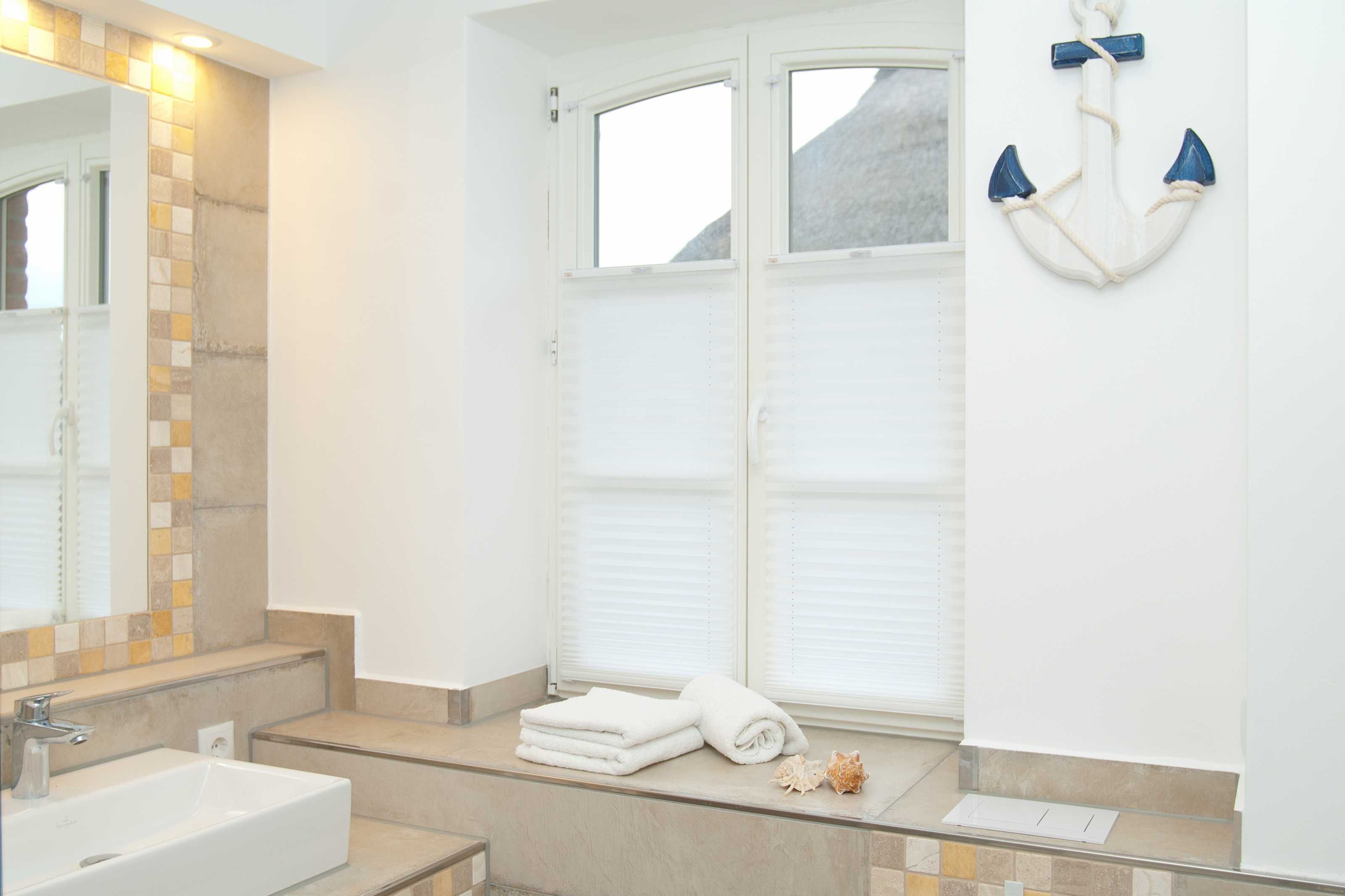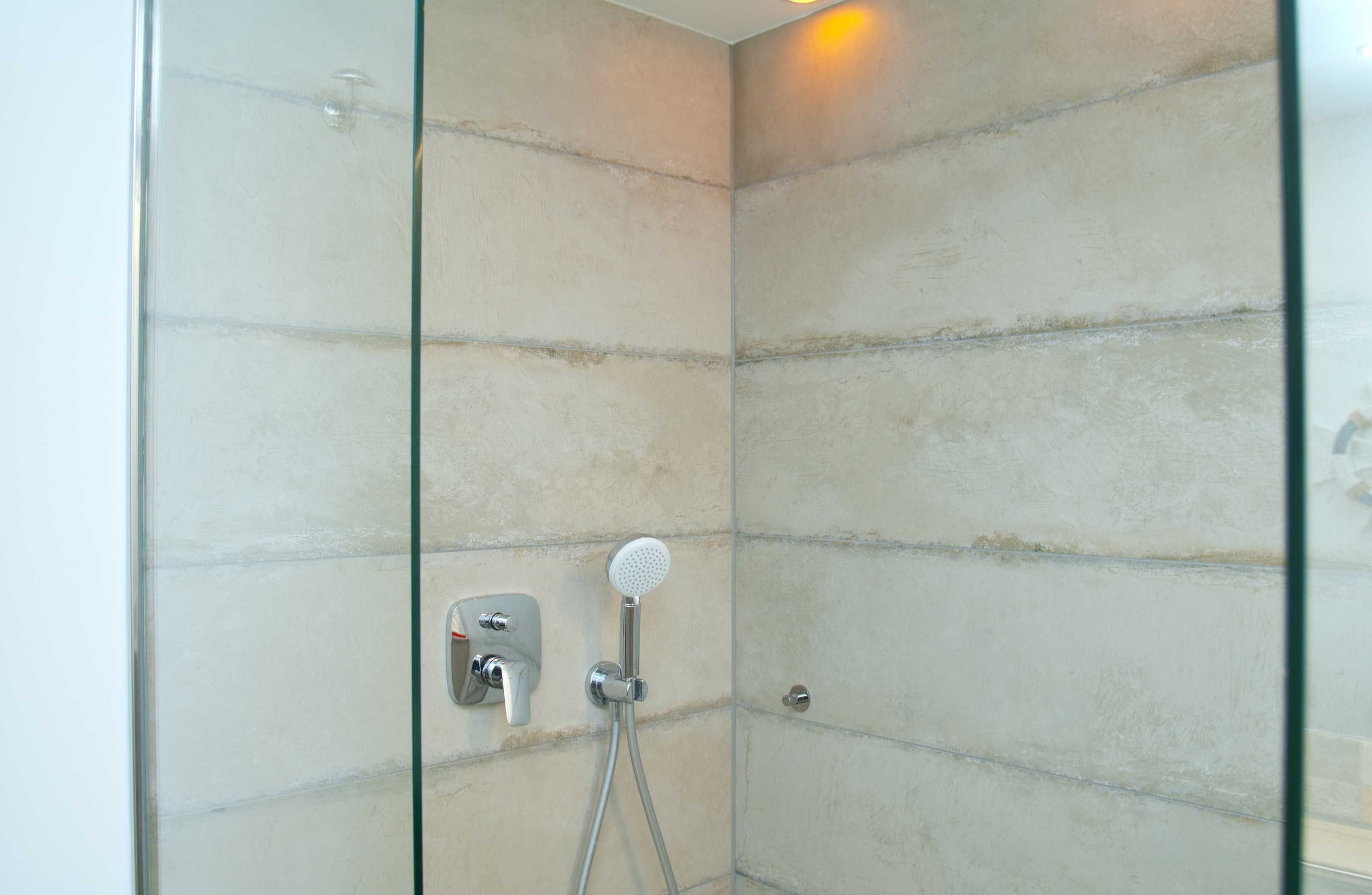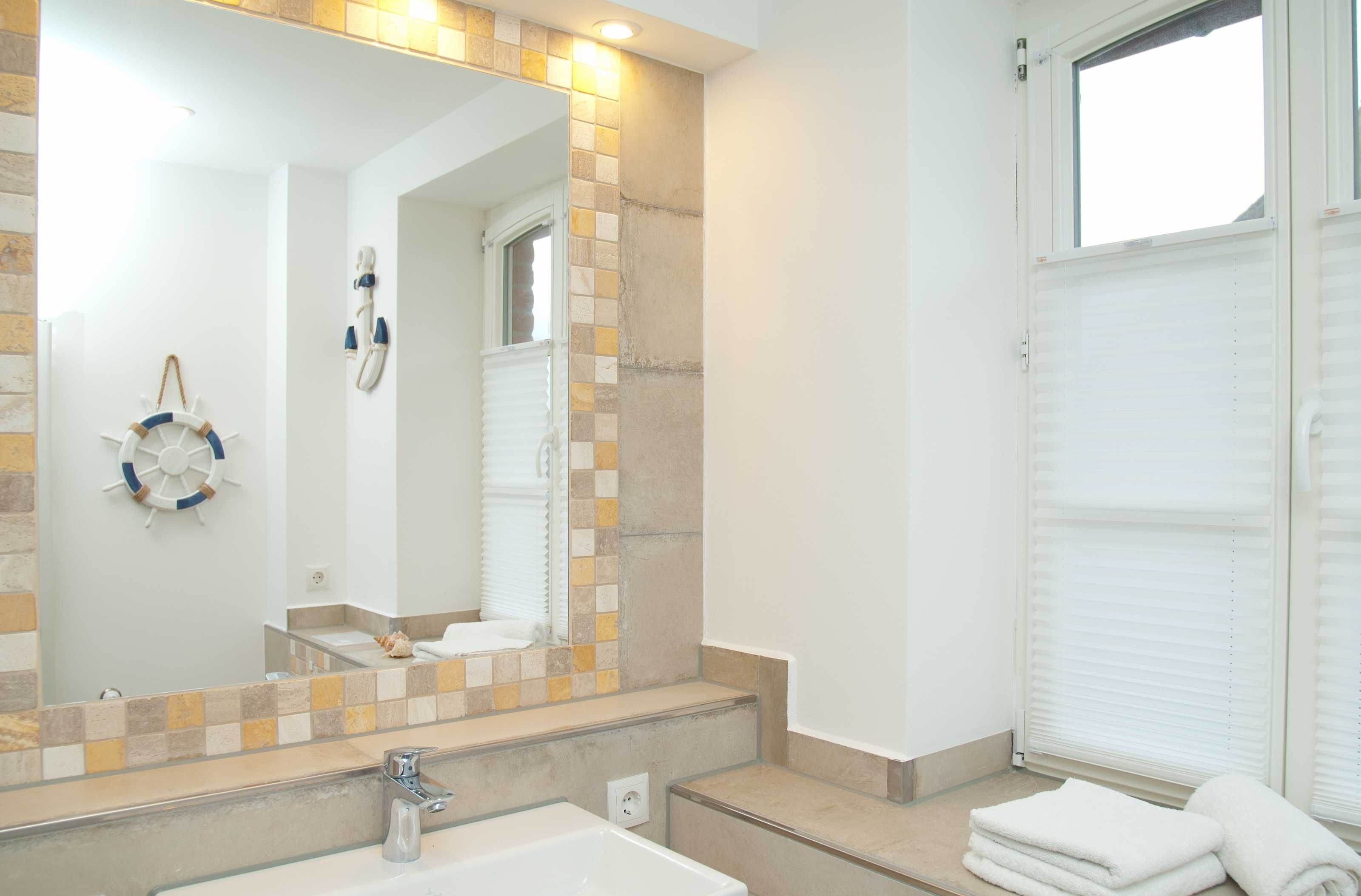 Der Badbereich mit Wellness-Regendusche bietet ausreichend Platz zum Relaxen.