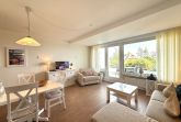 Das Appartement mit Balkon befindet sich im 1. Obergschoss des Hauses Halligblick und hat direkten Meerblick vom Wohnzimmer und Südbalkon. Hier erwartet Sie ein helles und großzügiges Wohn-Esszimmer. Das Schlafzimmer bietet Platz für zwei Personen in einem Doppelbett. Zwei weitere Schlafmöglichkeiten bietet das Wohnzimmer mit einer Schlafcouch. Ein Duschbad erfrischt Sie bereits am Morgen. Die Ferienwohnung ist ideal für 2 Personen mit Kleinkind geeignet.