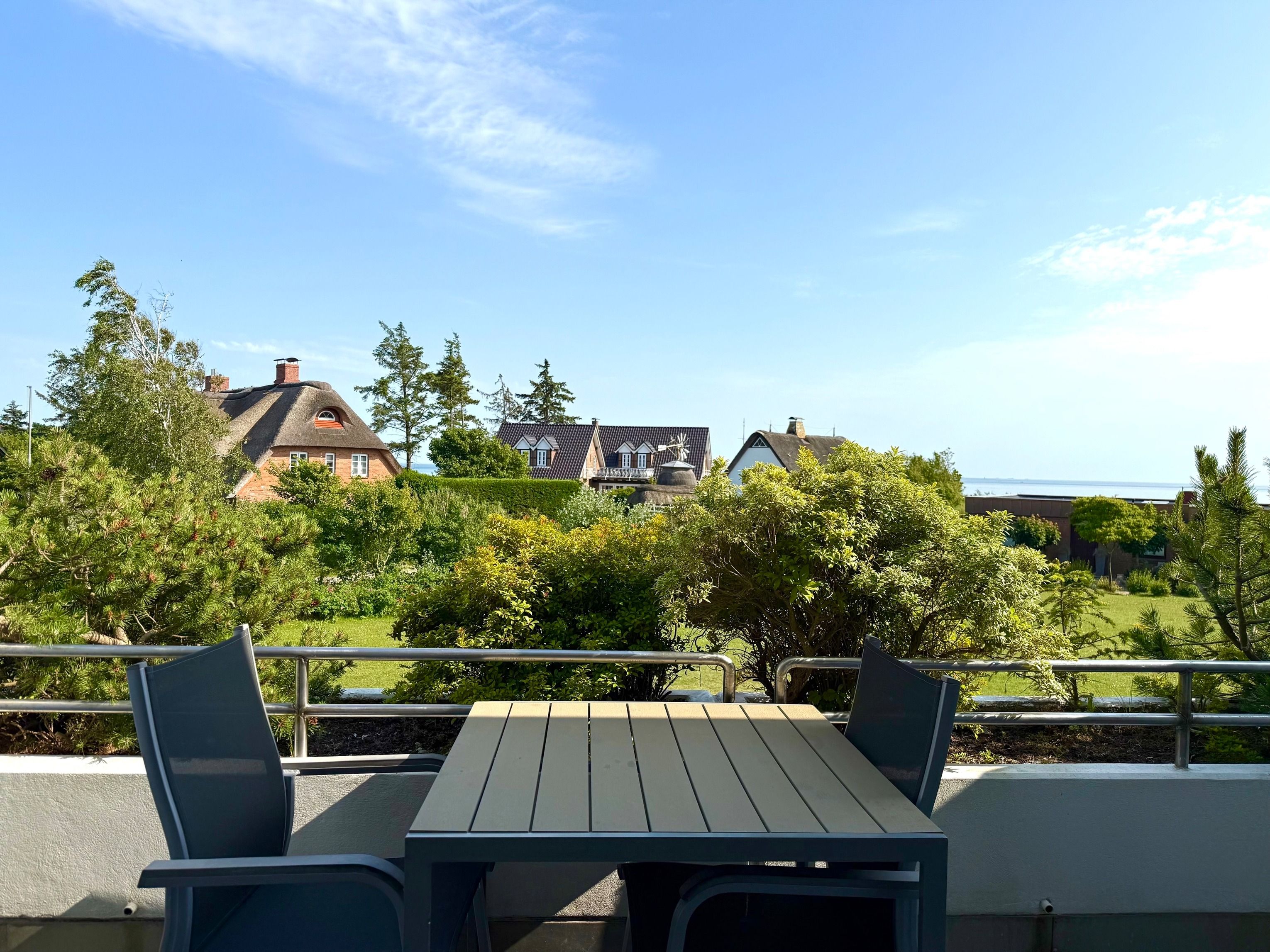 Der Wyker Südstrand ist in diesem Bereich ruhig in der Nähe des Golf- und Flugplatzes gelegen, in direkter Anbindung an die Strandpromenade, die Sie bis zum Hafen und die Innenstadt führt. Durch die direkte Busanbindung vor der Haustür gelangen Sie in wenigen Minuten in die Stadt oder die romantischen Inseldörfer.