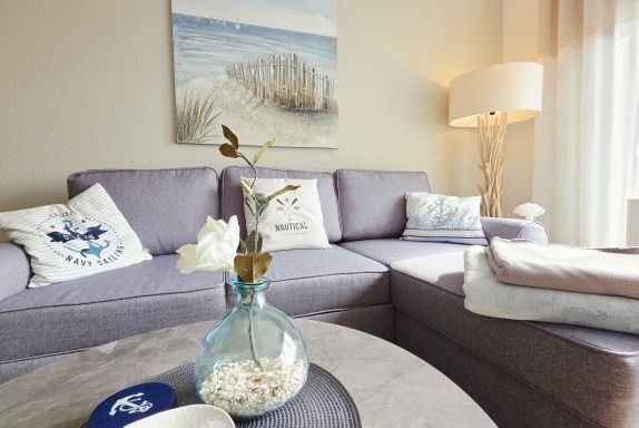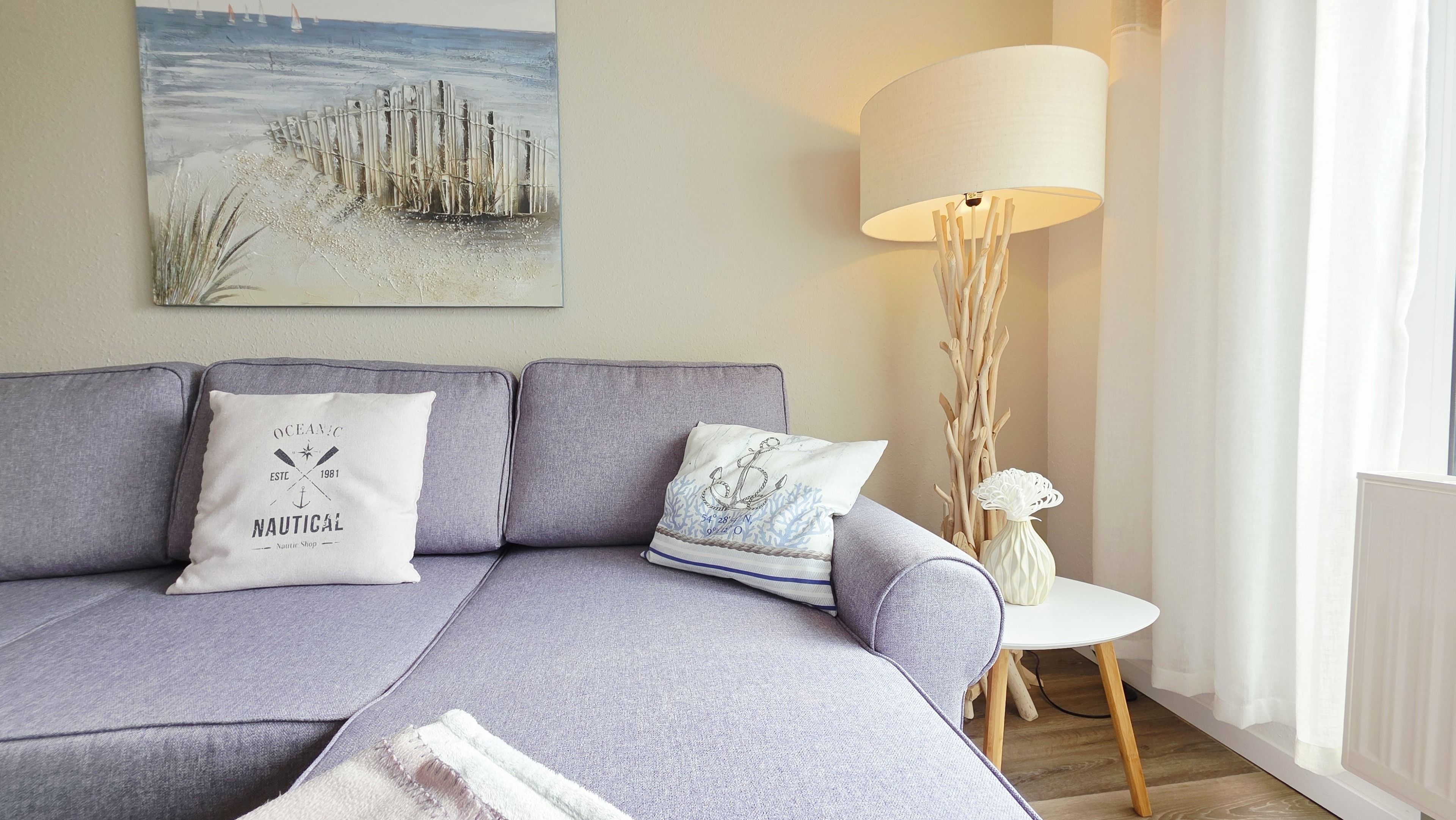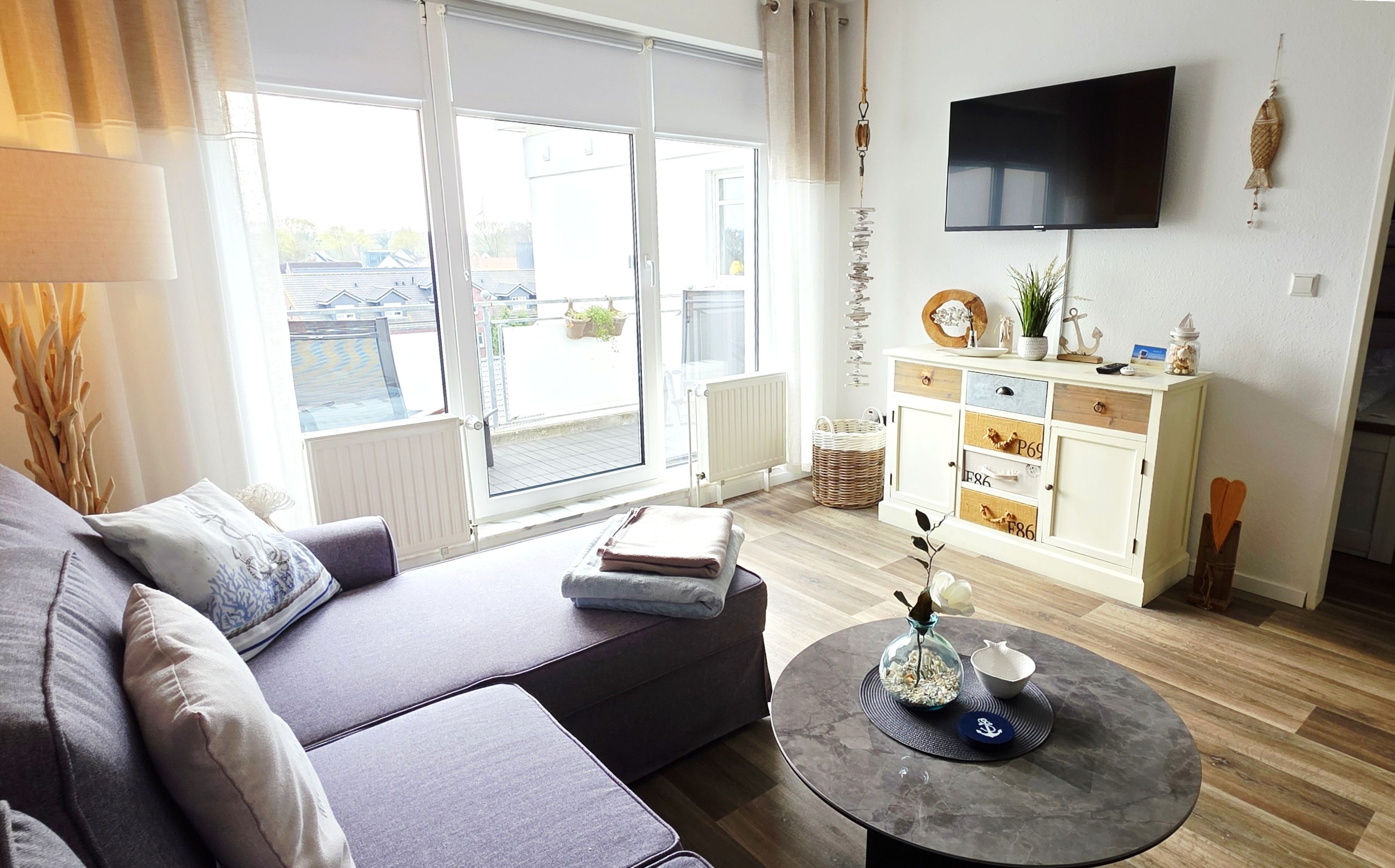 Der gemütliche, neu eingerichtete, helle Wohnraum ist mit einer Couch (ausziehbar als Bett für 1 Personen), Sideboard, Essplatz, TV & Radio ausgestattet. Hier haben Sie Zugang zum sonnigen, möblierten Süd-Balkon.