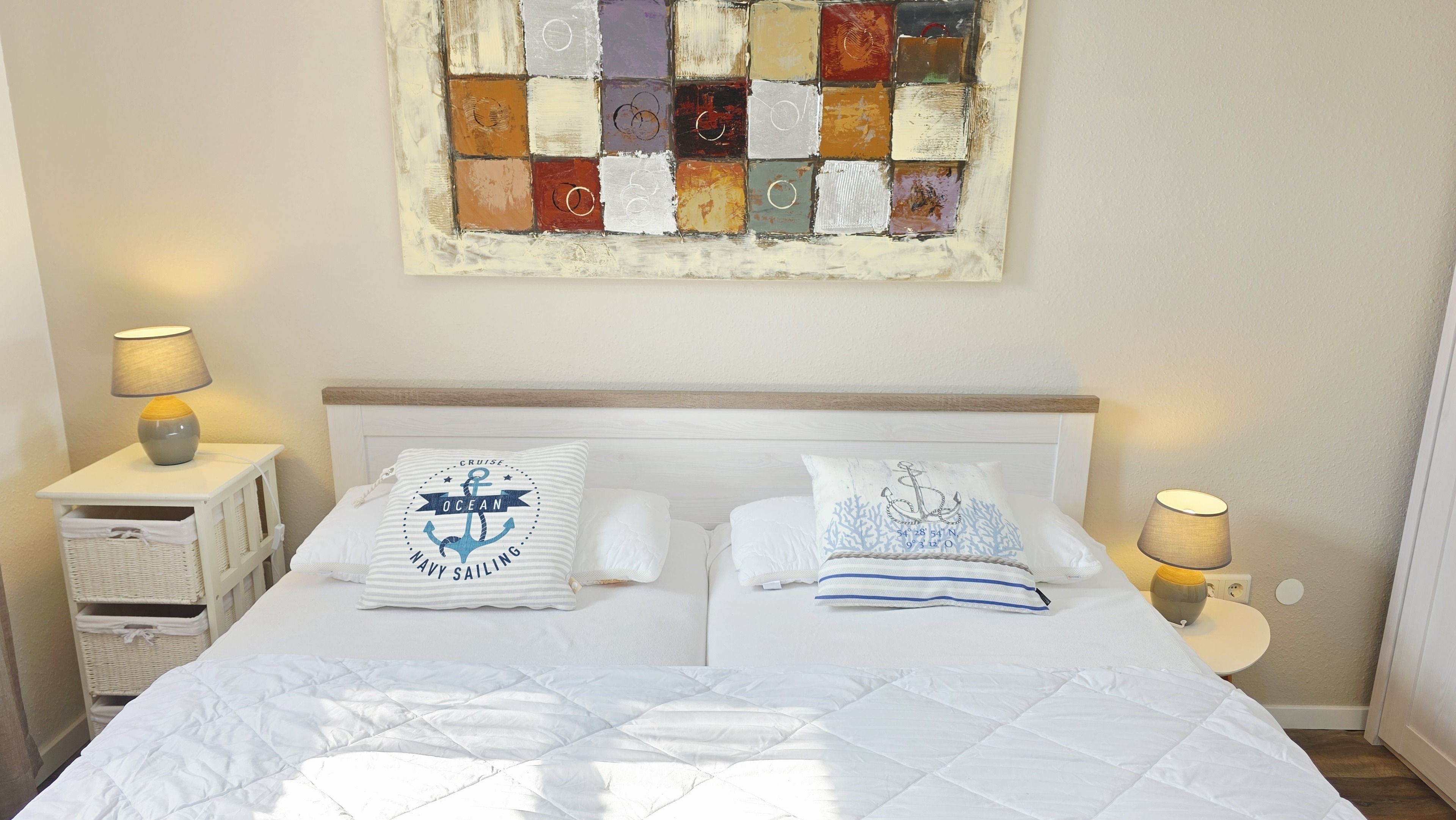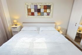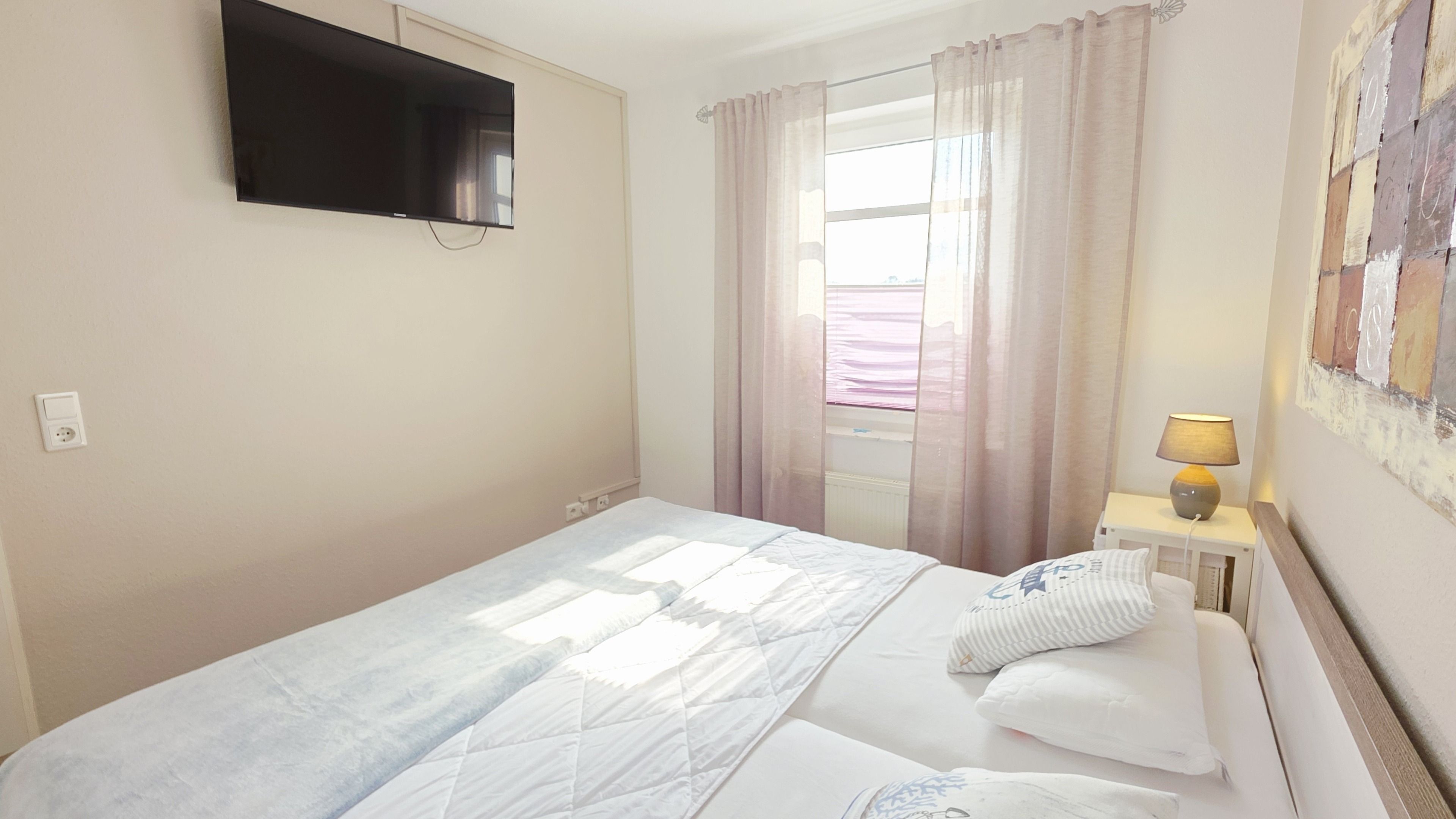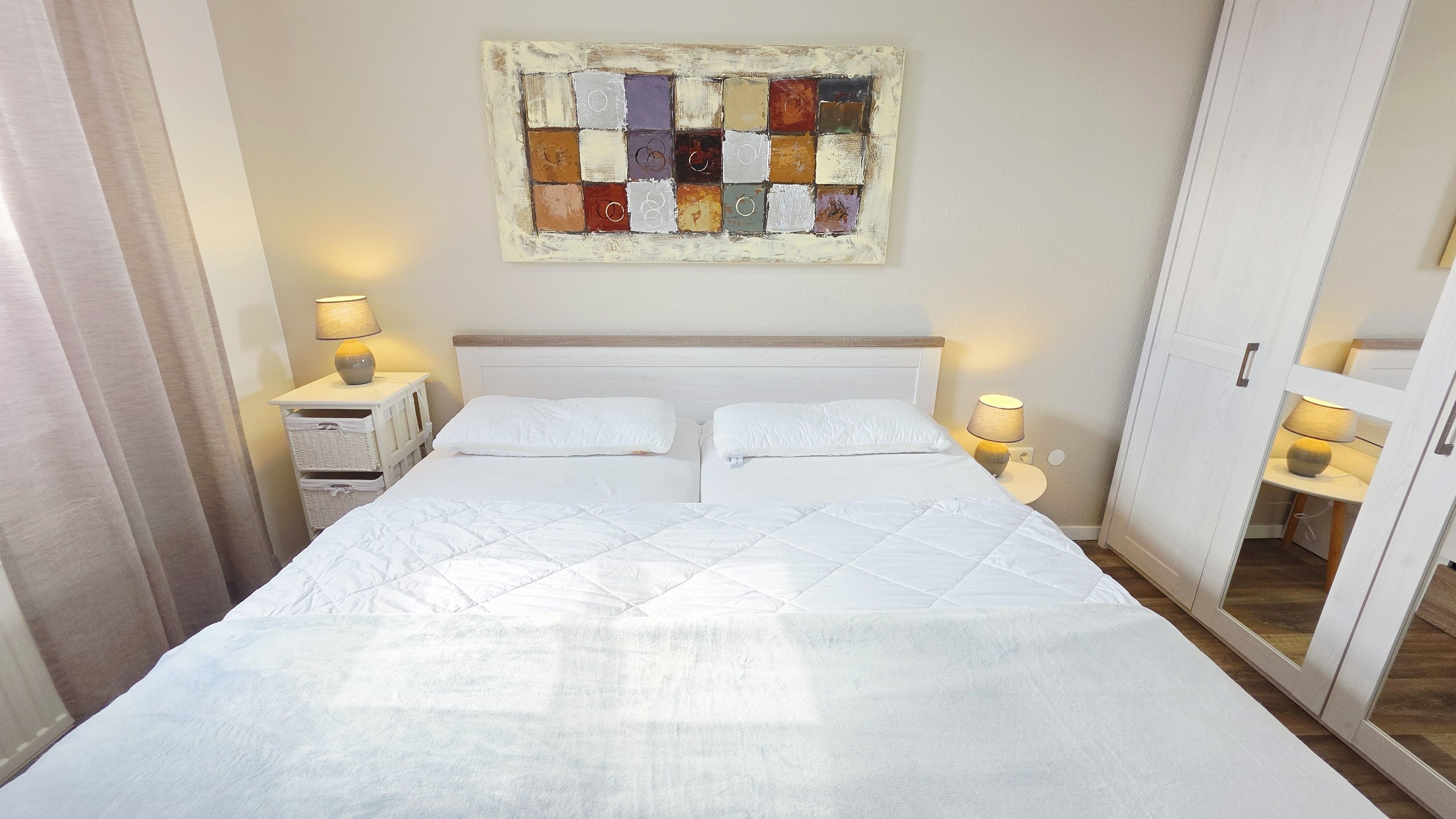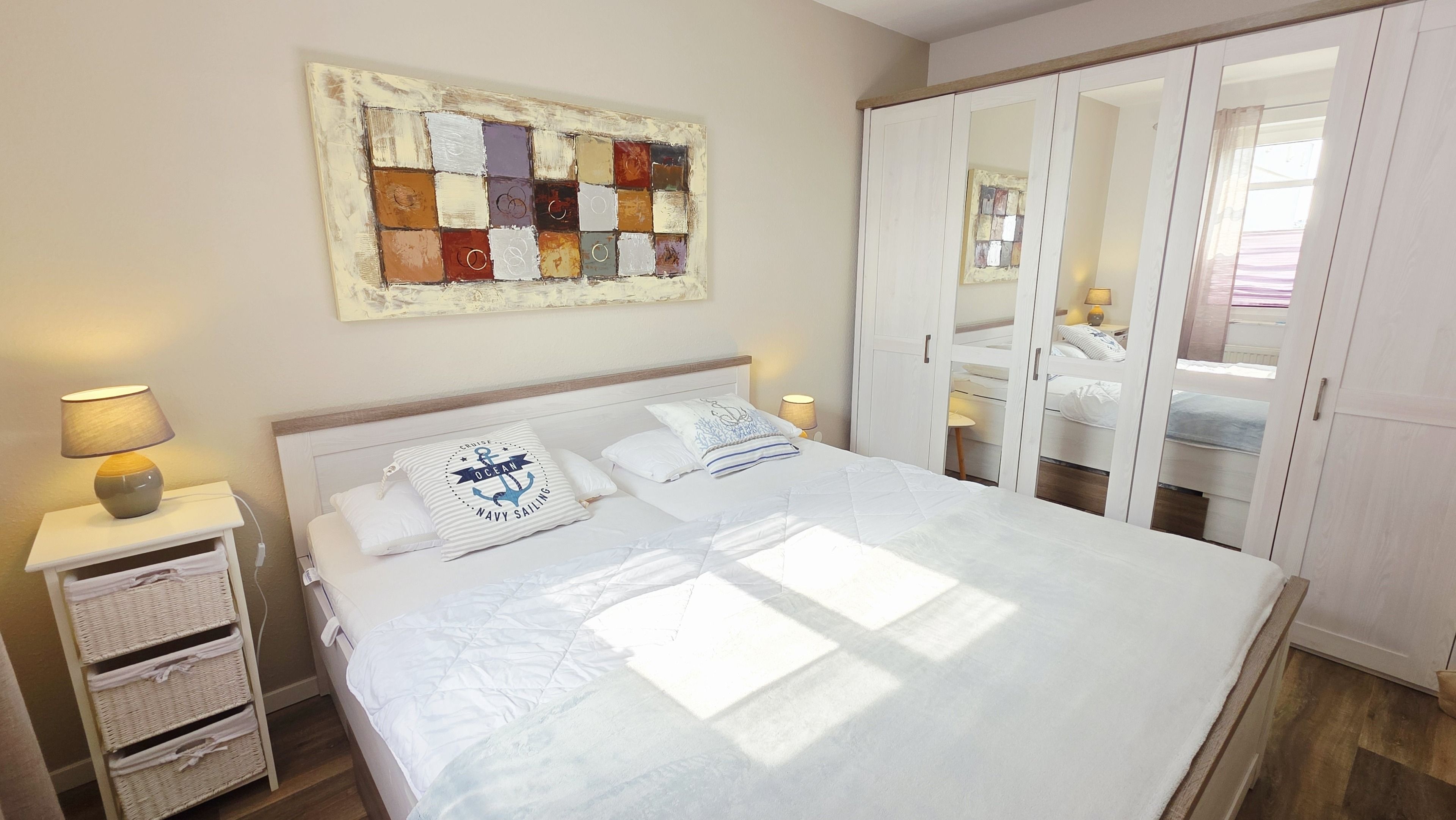 Das neue, freundliche Schlafzimmer verfügt über ein bequemes Doppelbett und Kleiderschrank.