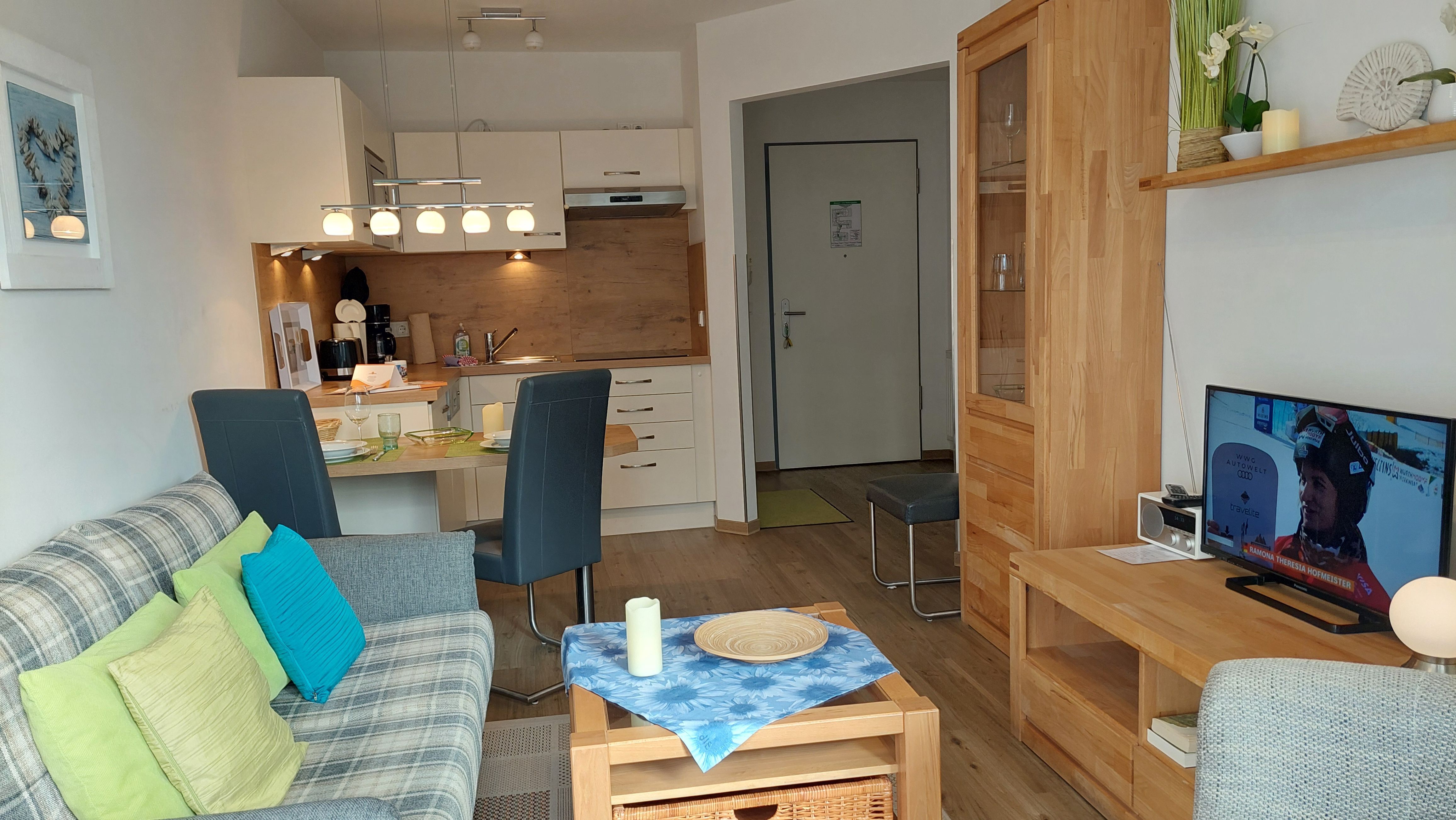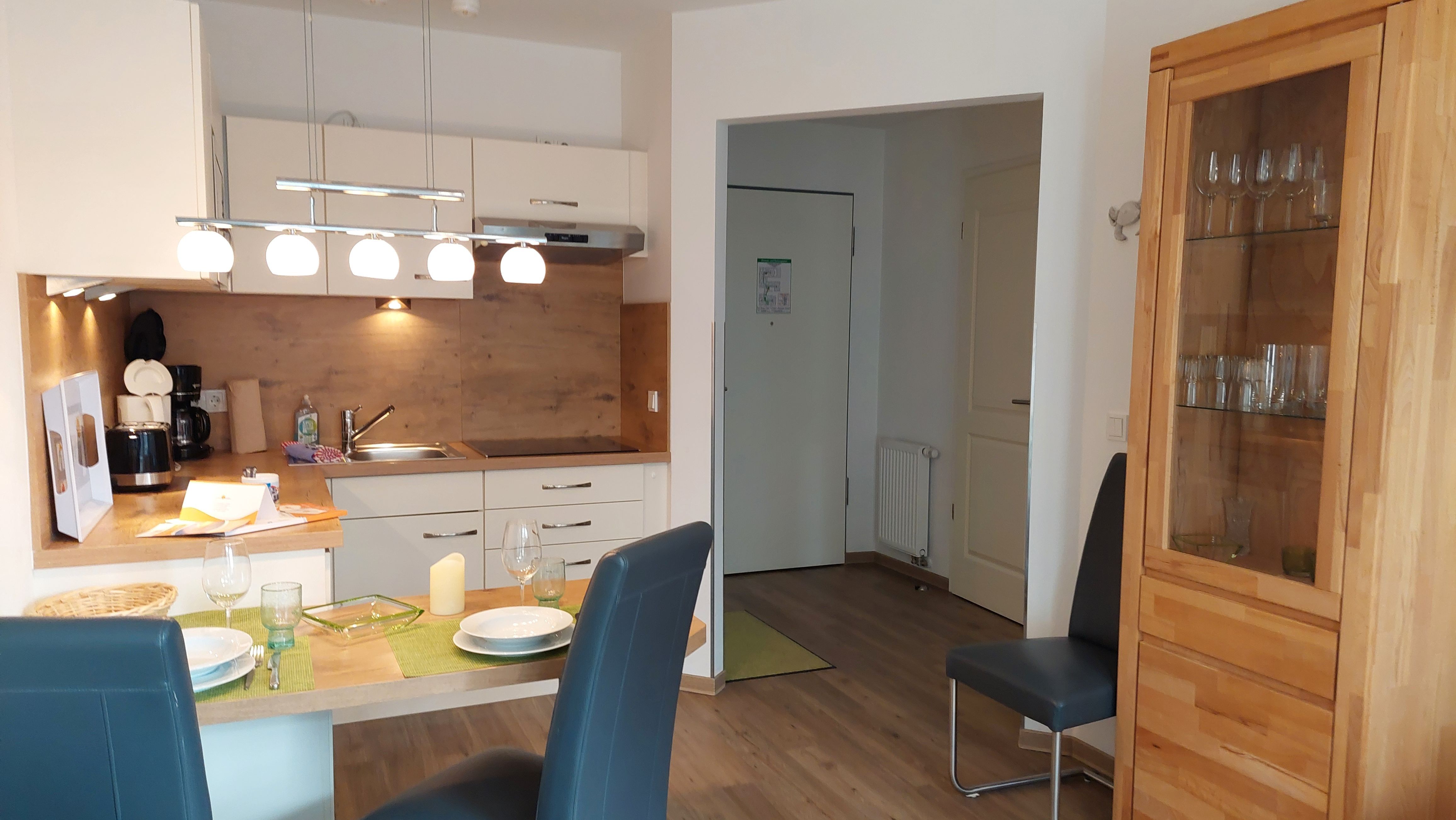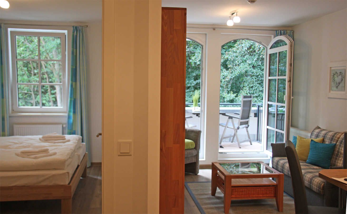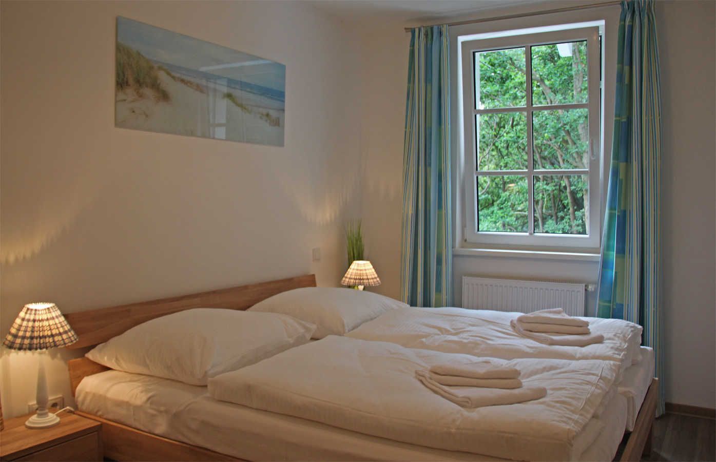 Kleine aber feine Ferienwohnung für 3 Personen mit Balkon und schönen Blick ins Grüne. Die Ferienwohnung liegt in der 3. Etage vom Haus Meeresblick. Das erst 2013 neu eröffnete Haus Meeresblick mit Schwimmbad, Massage- und Saunabereich liegt direkt am Strand von Baabe.