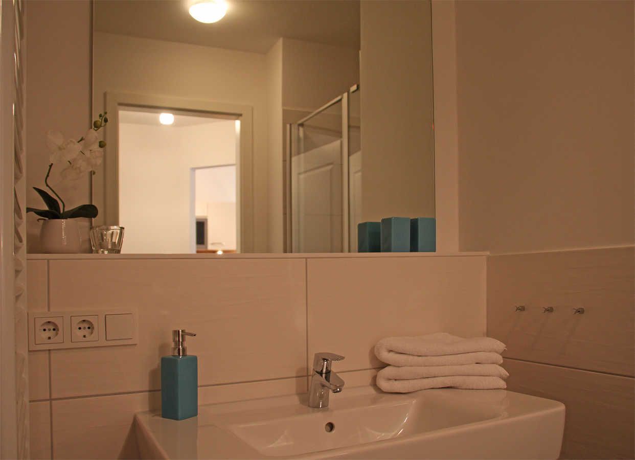 Die Wohnung ist bequem mit dem Fahrstuhl erreichbar; die Dusche im Bad ist ebenerdig.