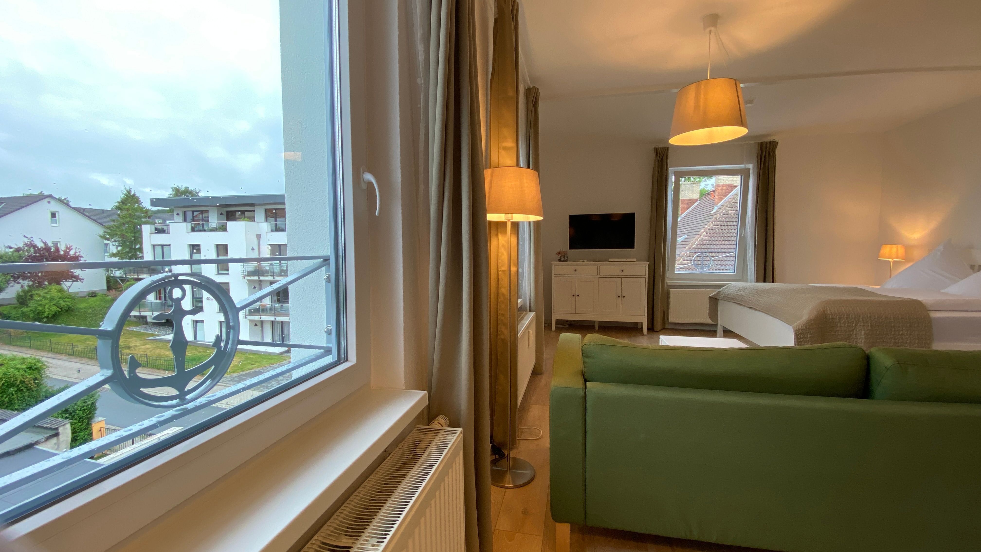 Großzügig geschnittene 1-Raum Ferienwohnung mit seitlichen Ostseeblick.