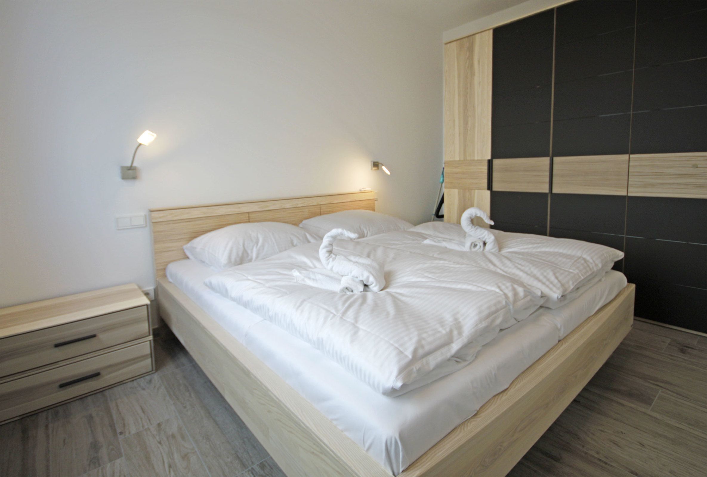 Die 98 qm große Penthousewohnung liegt in der 3. Etage und ist mit Lift gut zu erreichen direkt aus der Tiefgarage. Sie ist mit hohen Komfort ausgestattet und bietet 2 Doppelschlafzimmer, 2 Bäder ( eines davon en suite) WLAN, eine gut ausgestattete Küche, 2 Fernseher, 2 große Balkone mit ausreichend Mobiliar. Sie haben aus vielen Fenstern und von einem der Balkonen einen herrlichen Meerblick. Im Keller gibt es eine kostenpflichtige Sauna.