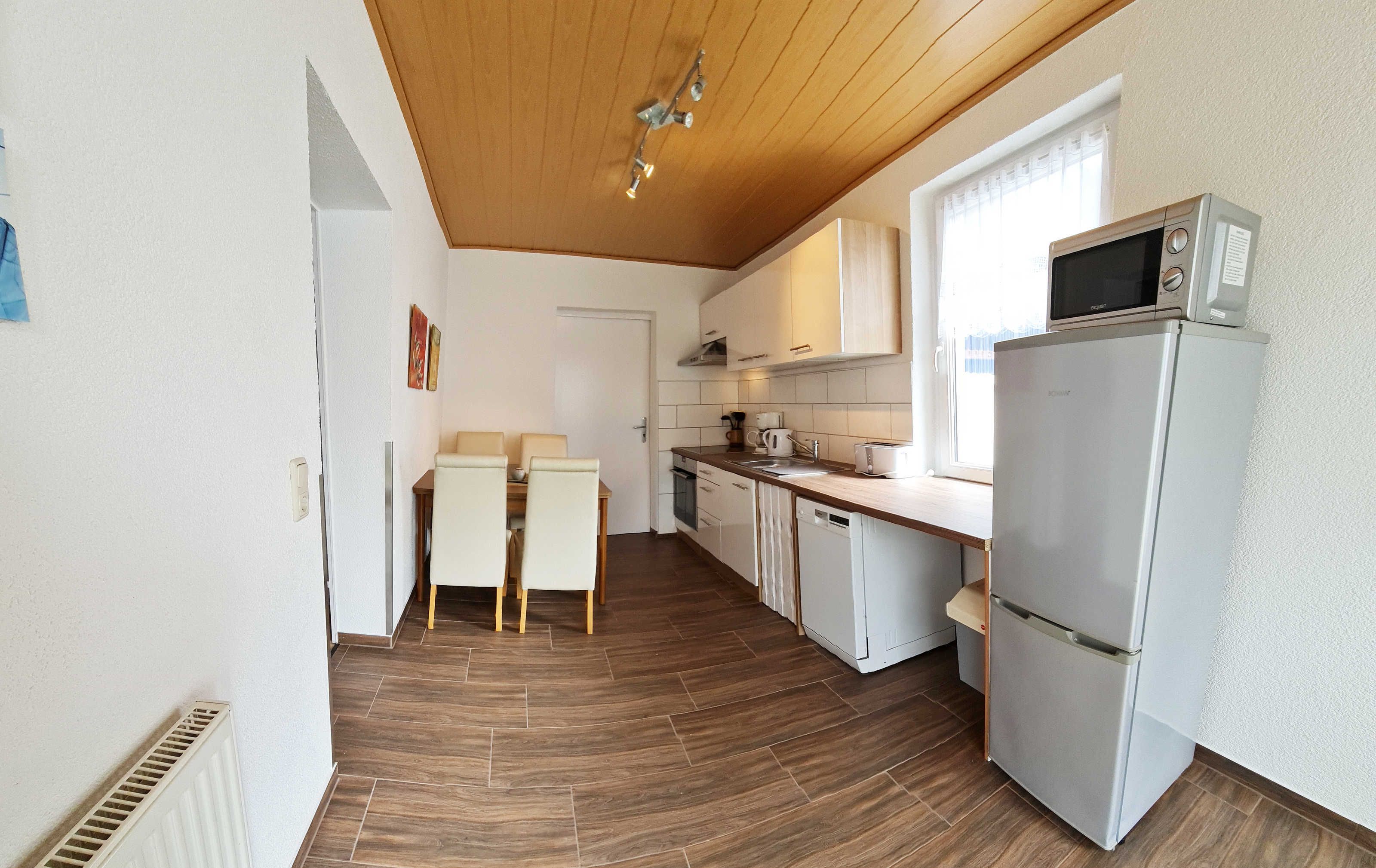 Sie wohnen in einer komplett ausgestattetem 65 m² 3-Raum-Ferienwohnungen mit hellen Möbeln. Die 3-Zi.-Wohnungen sind für 4 Erwachsene und 2 Kinder bis 12 Jahre ausgelegt und haben: 1 Wohnraum 2 Schlafzimmer, 2 Betten , 1 Etagenbett im 2. Schlafzimmer, Dusche/WC Küche TV Möblierte Terrasse, Liegewiese Parkplatz am Haus