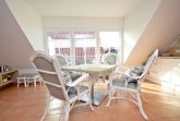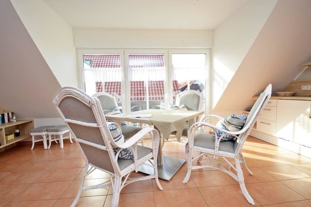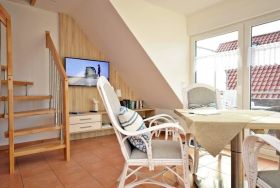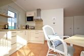 Erholung finden Sie in der hell gestalteten Wohnung. Der Wohnbereich mit 4 bequemen Esszimmer-Sessel und großem Esstisch lädt seine Gäste zu Entspannung ein. Zur Unterhaltung trägt der vorhandene 40 Zoll Flachbild-TV mit Blue-Ray-Player sowie die Bücher und Spiele bei. Die helle und sehr gut ausgestattete Einbauküche enthält Herd mit Ceranfeld, Abzugshaube, Kühlschrank mit Gefrierfach, Geschirrspüler sowie Kaffeemaschine, Wasserkocher, Toaster, Eierkocher, Mikrowelle sowie ausreichende Koch- und Küchenutensilien.