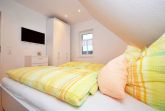 Gut zur Ruhe kommen Sie im Schlafzimmer mit Doppelbett (1,80 m x 1,90 m) und Ihre Kleidung findet Platz im Kleiderschrank. Ein 32 Zoll Flachbild-TV steht ebenfalls zur Verfügung.