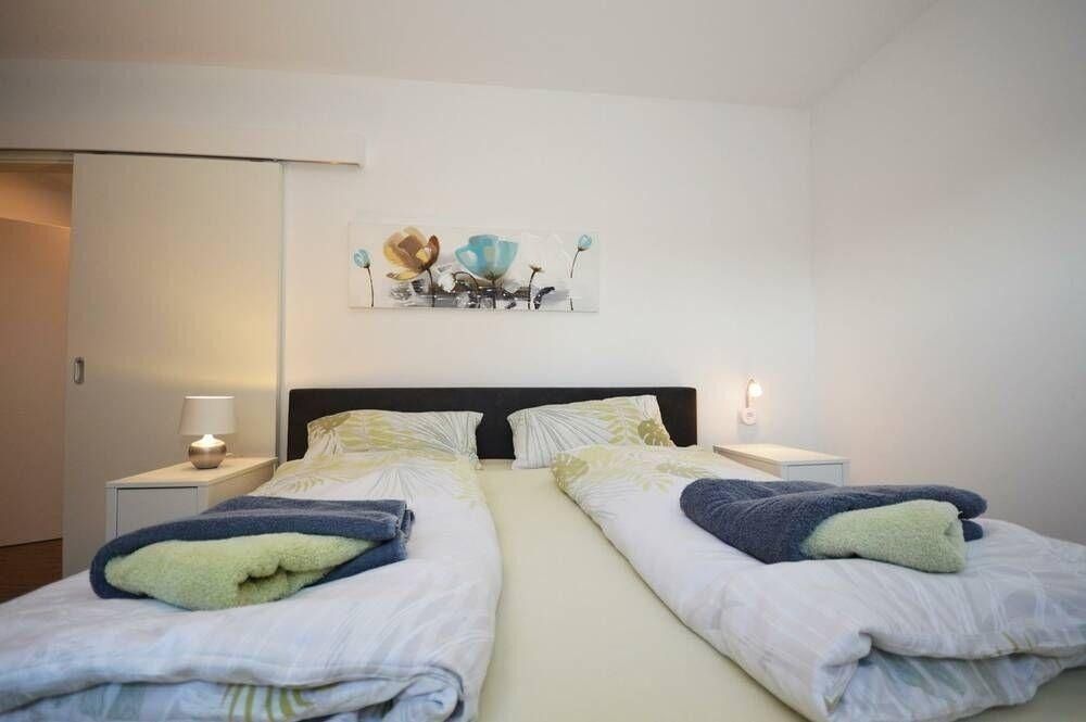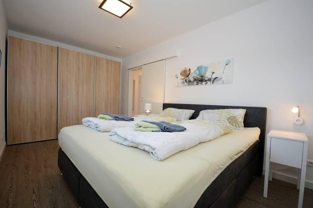 Im Schlafzimmer steht Ihnen ein Boxspringbett zur Verfügung; hier kann für die dritte Person auch ein Baby-Reisebettchen aufgestellt werden; oder die dritte Person findet auf der Schlafcouch im Wohn-/ Essbereich seinen Schlaf um neue Energie für den nächsten Tag zu tanken.