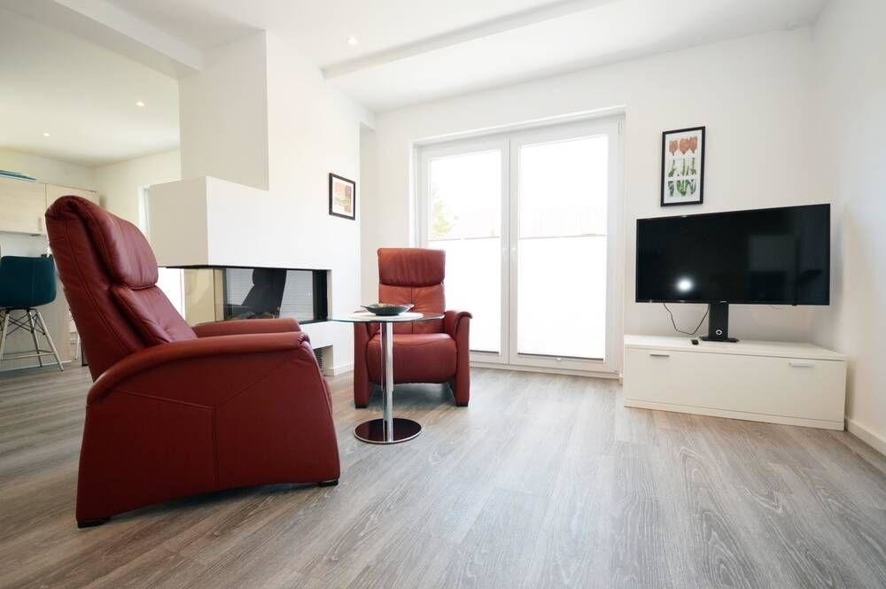 Bei einem Absacker können Sie am Abend in der Wohnung den Gaskamin nutzen, der indirekt beleuchtet ist. Oder nutzen Sie die Terrasse um den Tag Revue passieren zu lassen; oder ihn bei einem leckeren Frühstück zu starten.