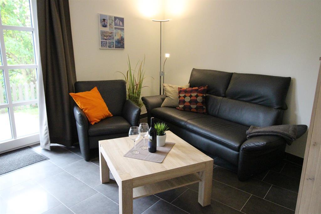 Neu seit August 2016 - Moin moin in unserer Erdgeschoß - Kajüte ! Eine neue, hochwertig und liebevoll eingerichtete Ferienwohnung komplett ebenerdig mit Terasse erwartet Sie unmittelbar am Deich von St. Peter-Ording.Der Fußweg zum Strand beträgt nur 200m. Neben dem Wohnzimmer mit Ledergarnitur und Sat-TV befindet sich die Küche mit Geschirrspüler, Mikrowelle, Herd mit Ceranfeld und Backofen, sowie eine eine Eßecke. Zum Schlummern dienen zwei Schlafräume (1,80x2,00m bzw. 0,90x2,00m Betten). Das Badezimmer ist mit einer begehbaren Dusche, Waschtisch, Handtuchheizung und WC ausgestattet. Die Wohnung ist komplett gefliest. Haustiere sind leider nicht gestattet, Allergiker jedoch herzlich willkommen. Fühlen Sie sich bei uns wie zu Hause!