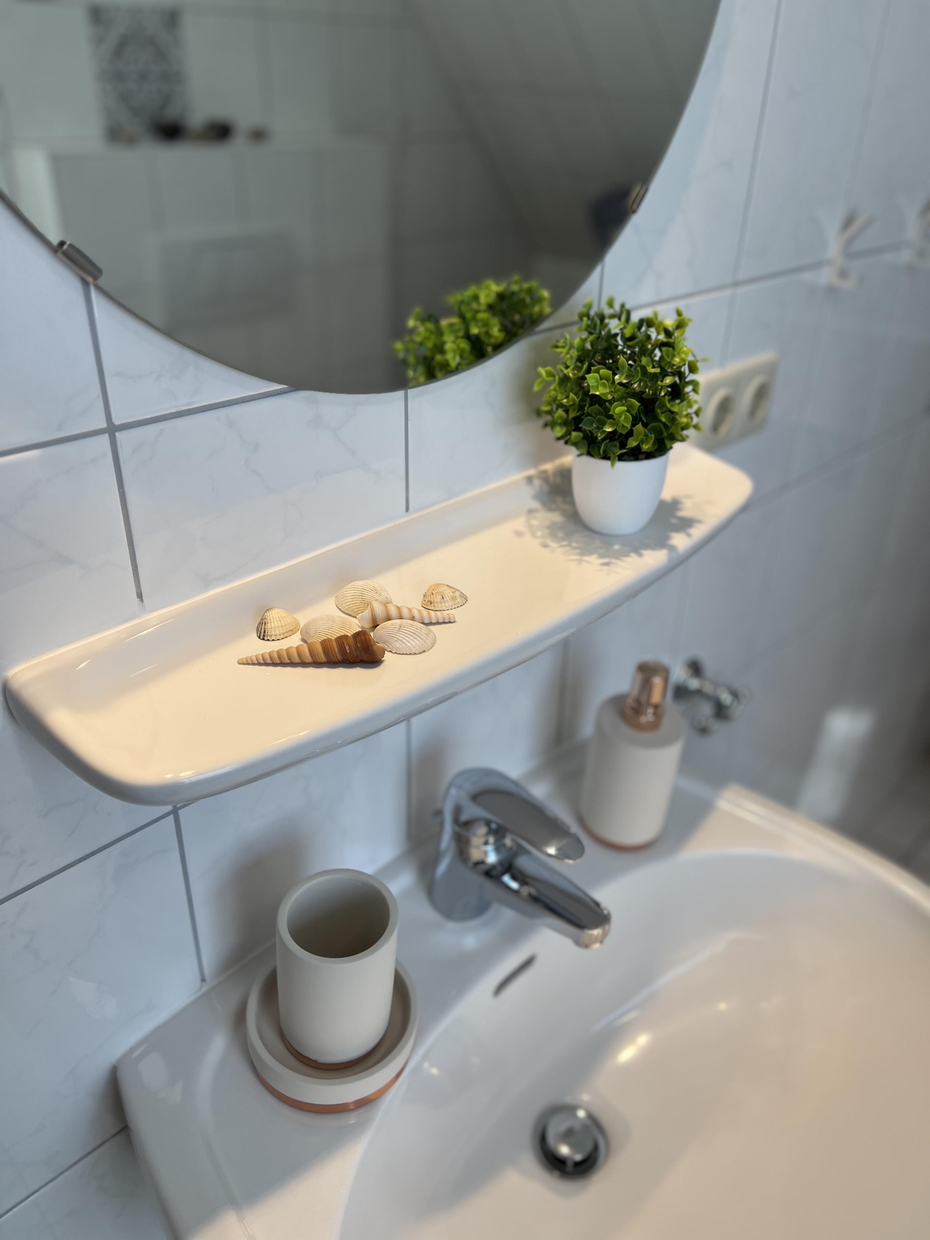 Das Duschbad ist mit einer Fußbodenheizung und ebenso mit einem Fön ausgestattet.
